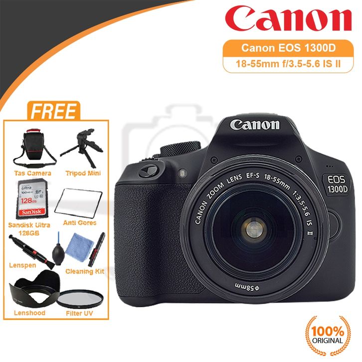 KAMERA CANON EOS 1300D KIT EF-S PAKET LENGKAP BODY ONLY + LENSA KIT 18-55MM IS WIFI DIGITAL CAMERA DSLR VLOG ORI MURAH