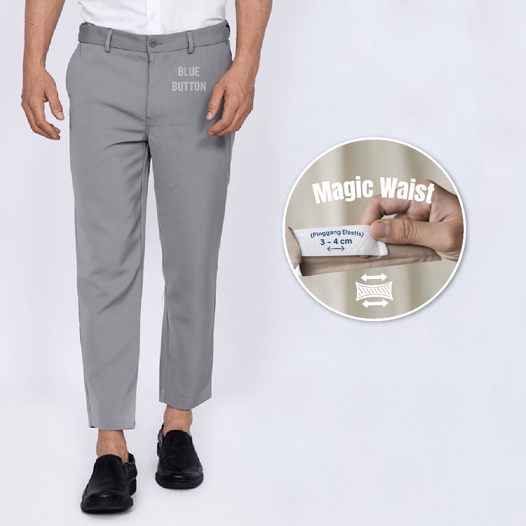 BLUEBUTTON CELANA BAHAN FORMAL PRIA SLIM FIT ANKLE PANTS AIR LIGHT GREY ORIGINAL