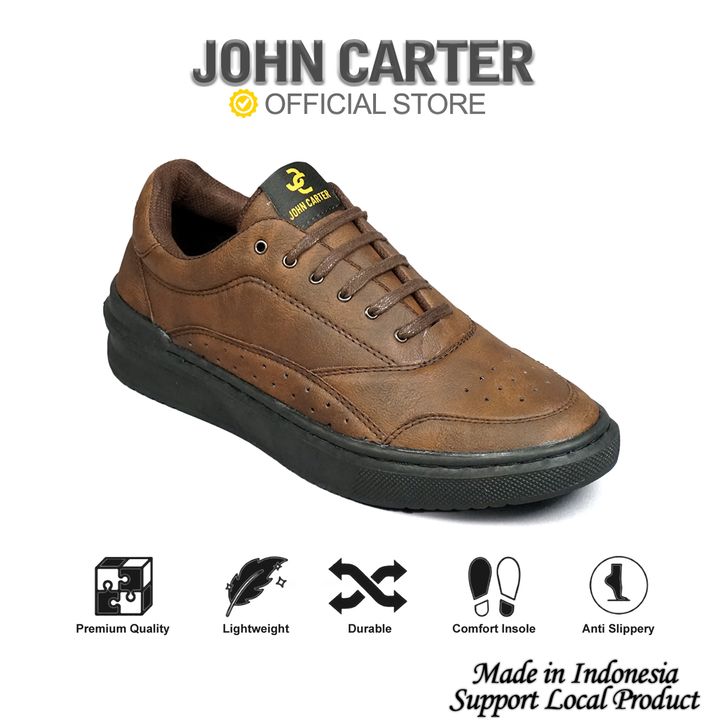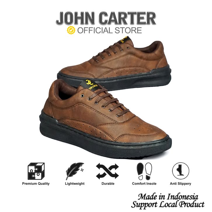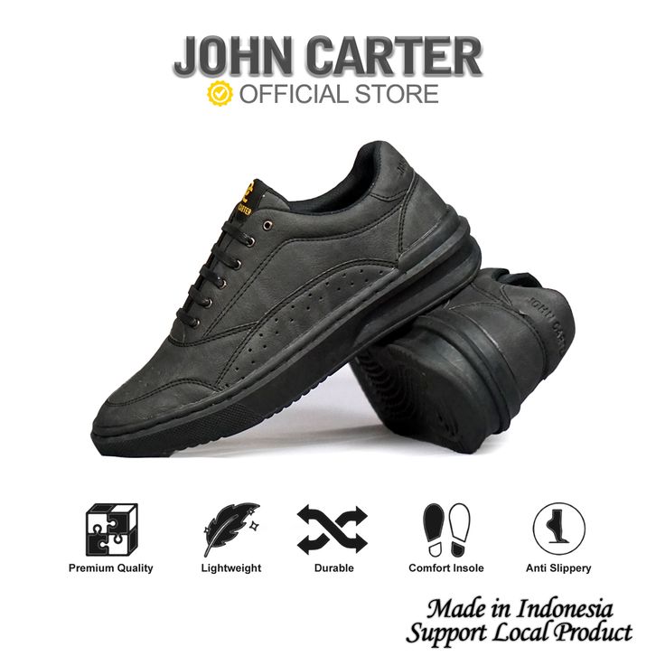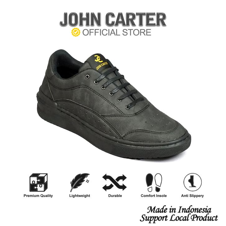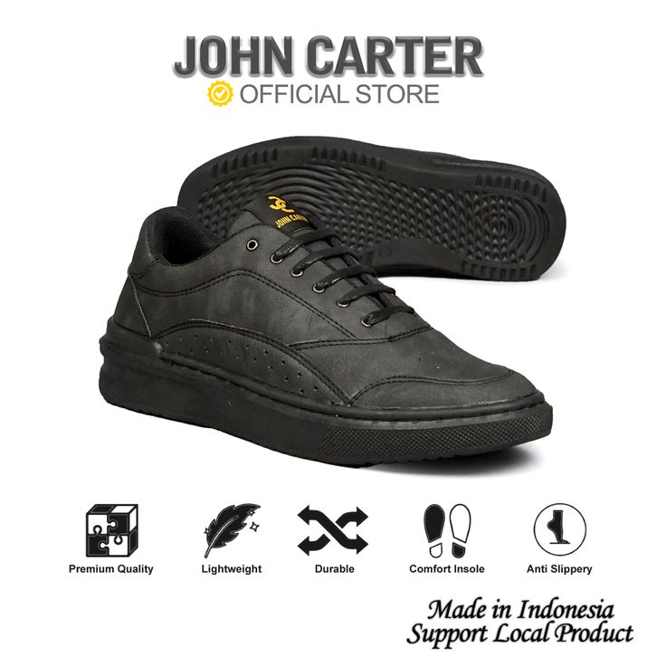 JOHN CARTER TRISTAN Black Sepatu Sneakers Kasual Kerja Pria Modern
