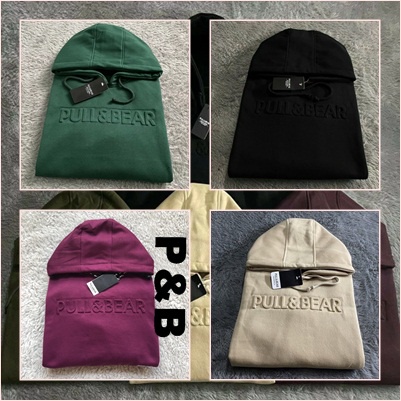 SWEATER HOODIE PULL&BEAR EMBOS & FLOCKING PREMIUM PRIA-WANITA(UNISEX)MURMER
