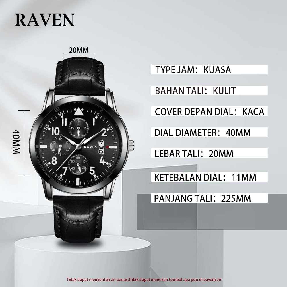 RAVEN Jam Tangan Pria Kulit Original Anti Air Kuarsa Olahraga Kasual Kekinian