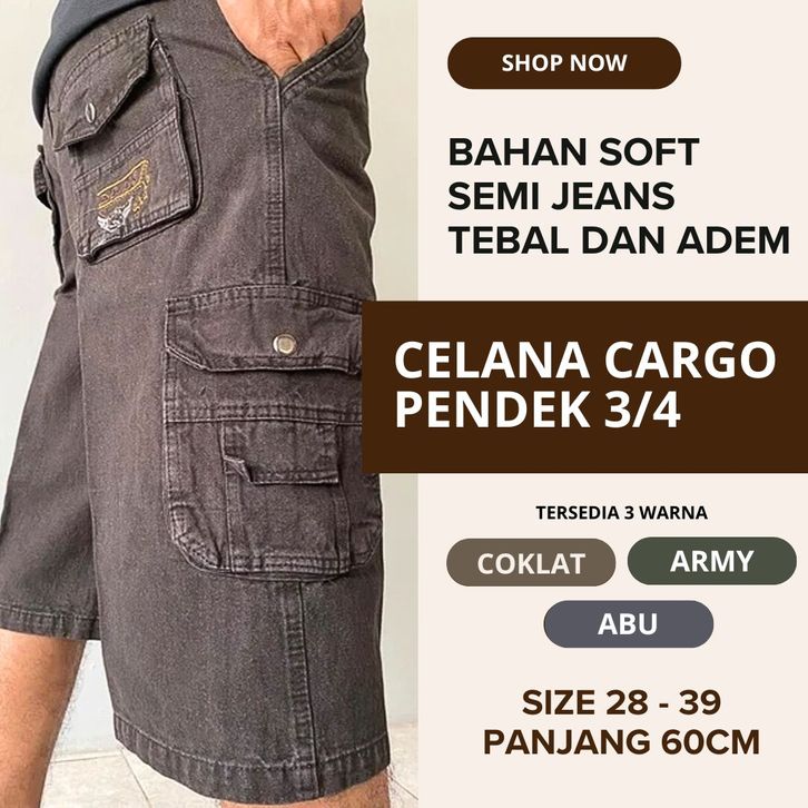[TERLARIS] Celana Cargo Pria PDL Pendek Bawah Lutut 3/4 | Celana Gunung | Cargo Pendek Kimpul Bahan Twil 27 sampai 38