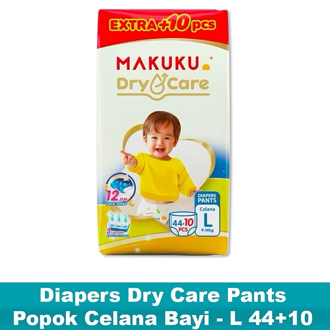 MAKUKU DIAPERS DRY CARE JUMBO L44+10 1 2 3 4 BALL PEMPERS BAYI L 44+10 L44 +10 POPOK BABY CELANA MURAH BERKUALITAS