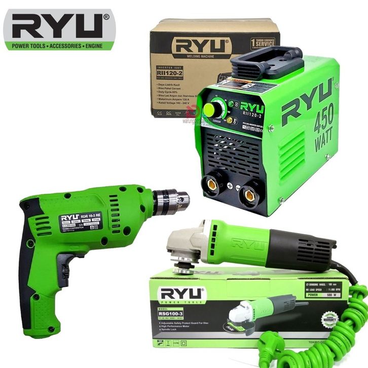 (PAKET 3 ITEM) TEKIRO RYU MESIN LAS 450 WATT GERINDA MESIN BOR LISTRIK TRAFO - LAS GERINDA