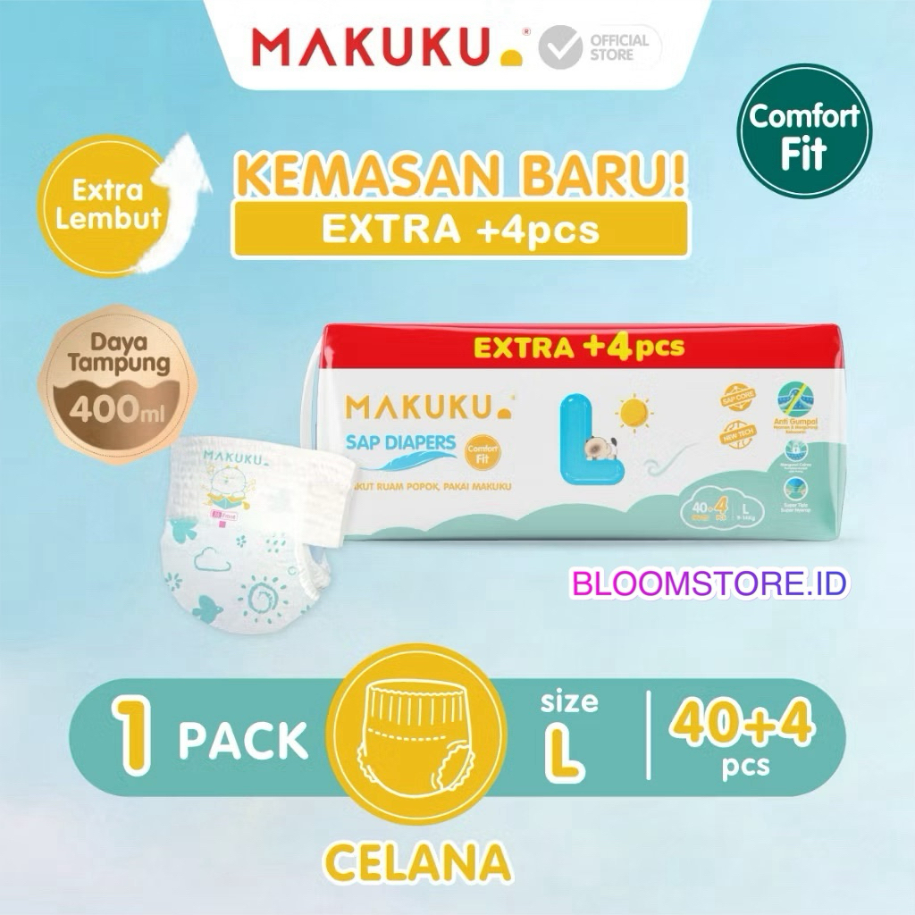 MAKUKU AIR DIAPERS COMFORT FIT SAP L40 L40+4 4 3 2 1 BALL L ISI 40 + 4 +4 40+4 EKSTRA 4 FREE 4PCS JUMBO PEMPERS MURAH