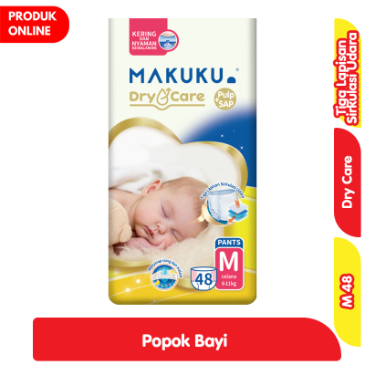 MAKUKU DIAPERS DRY CARE JUMBO M48+10 1 2 3 4 BALL PEMPERS BAYI CELANA PANTS M 48+10 M48 +10 POPOK BABY MURAH BEST SELLER