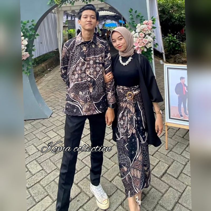 BAJU COUPLE KEMEJA BATIK PRIA DAN ROK LILIT MOTIF ASTA COKLAT / COUPLE KEMEJA LENGAN PANJANG KONDANGAN