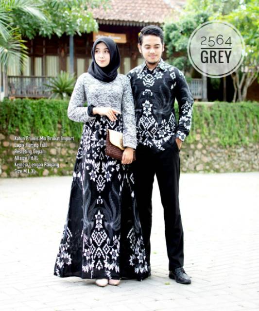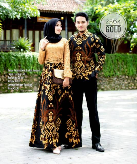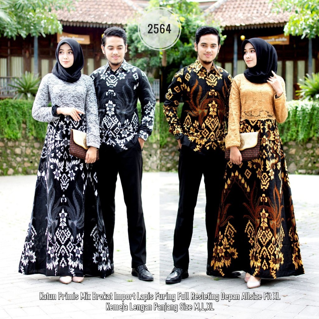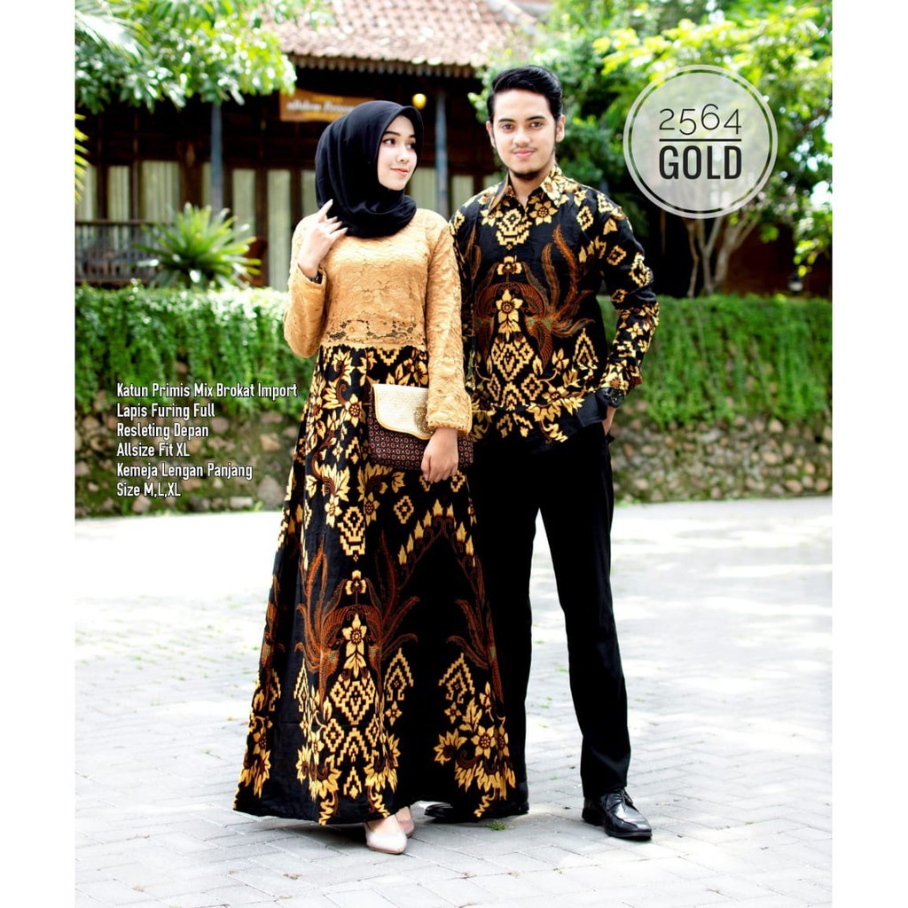 BAJU COUPLE PASANGAN BATIK DRESS KONDANGAN GAMIS BRUKAT CORNELI KOMBINASI BATIK SOGA 2564 SANIA RUFFLE