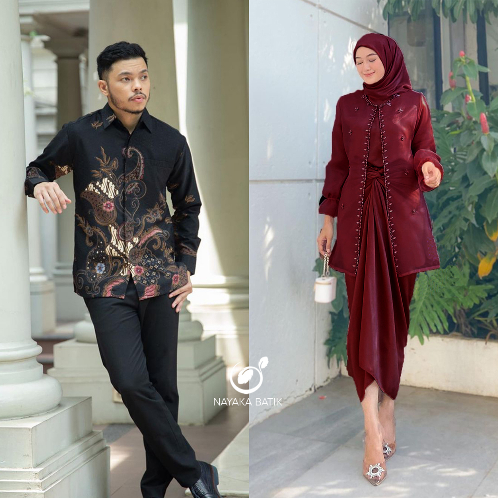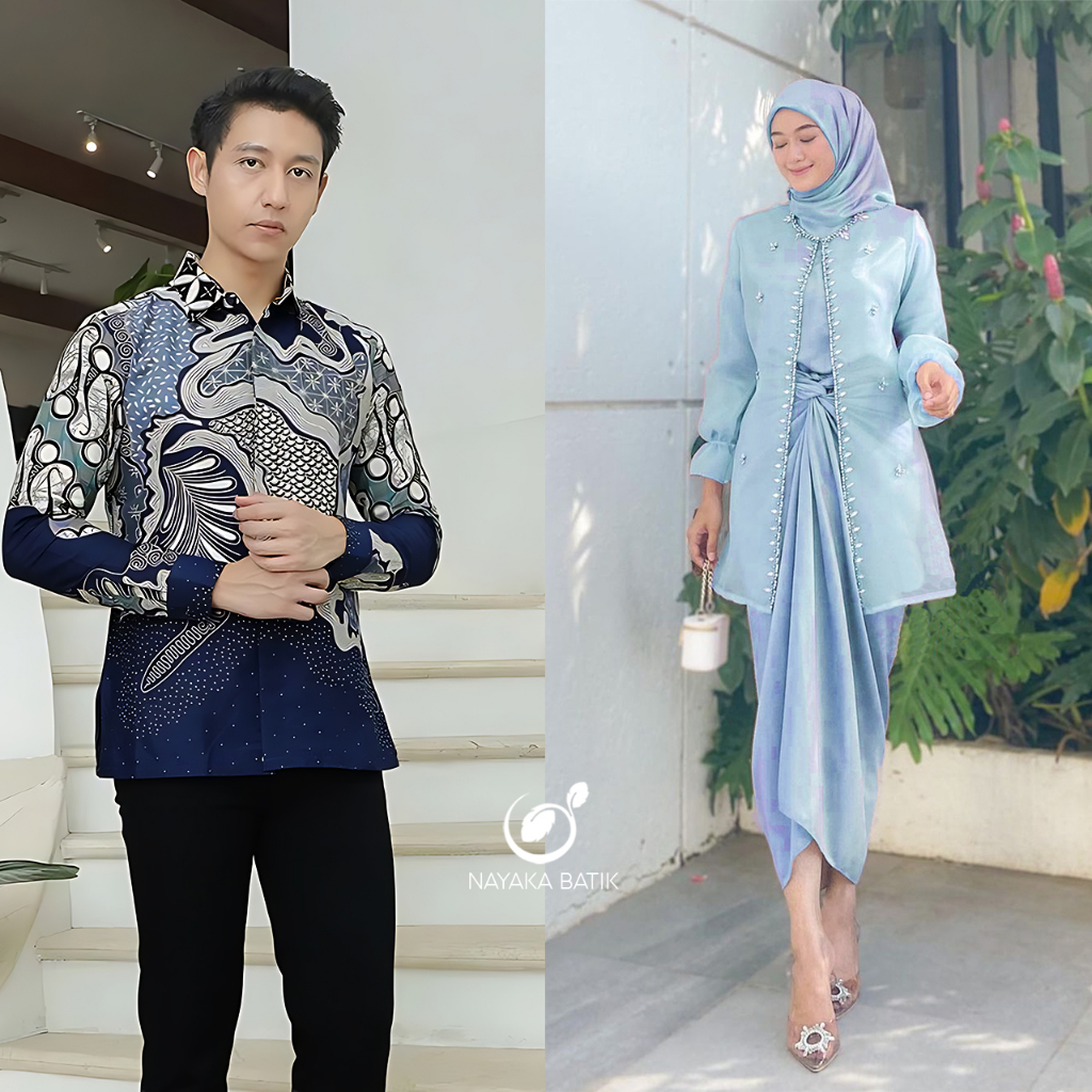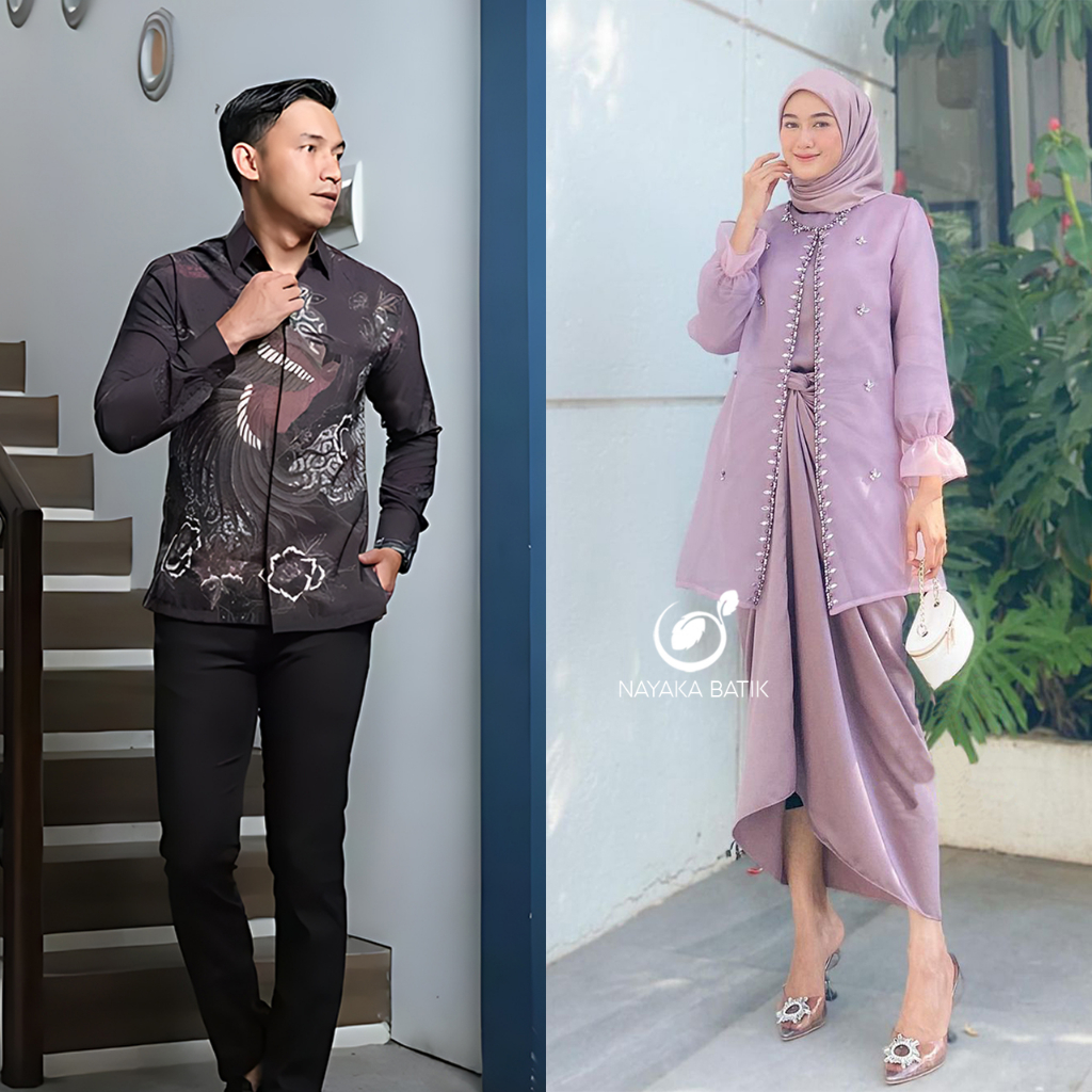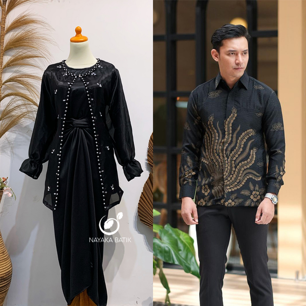 COUPLE ONE SET ORGANZA AMARA BATIK COUPLE KOREAN STYLE COUPLE STELAN JEEMA DAN KEMEJA BATIK LENGAN PANJANG