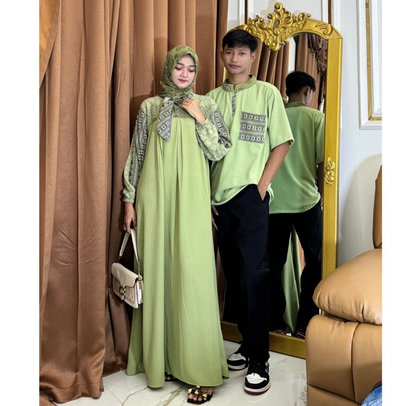 RENNA SARIMBIT GAMIS DRES CRINGKEL MIX CERUTY PRINTING FREE HIJAB BUSUI HIJAB SEGIEMPAT
