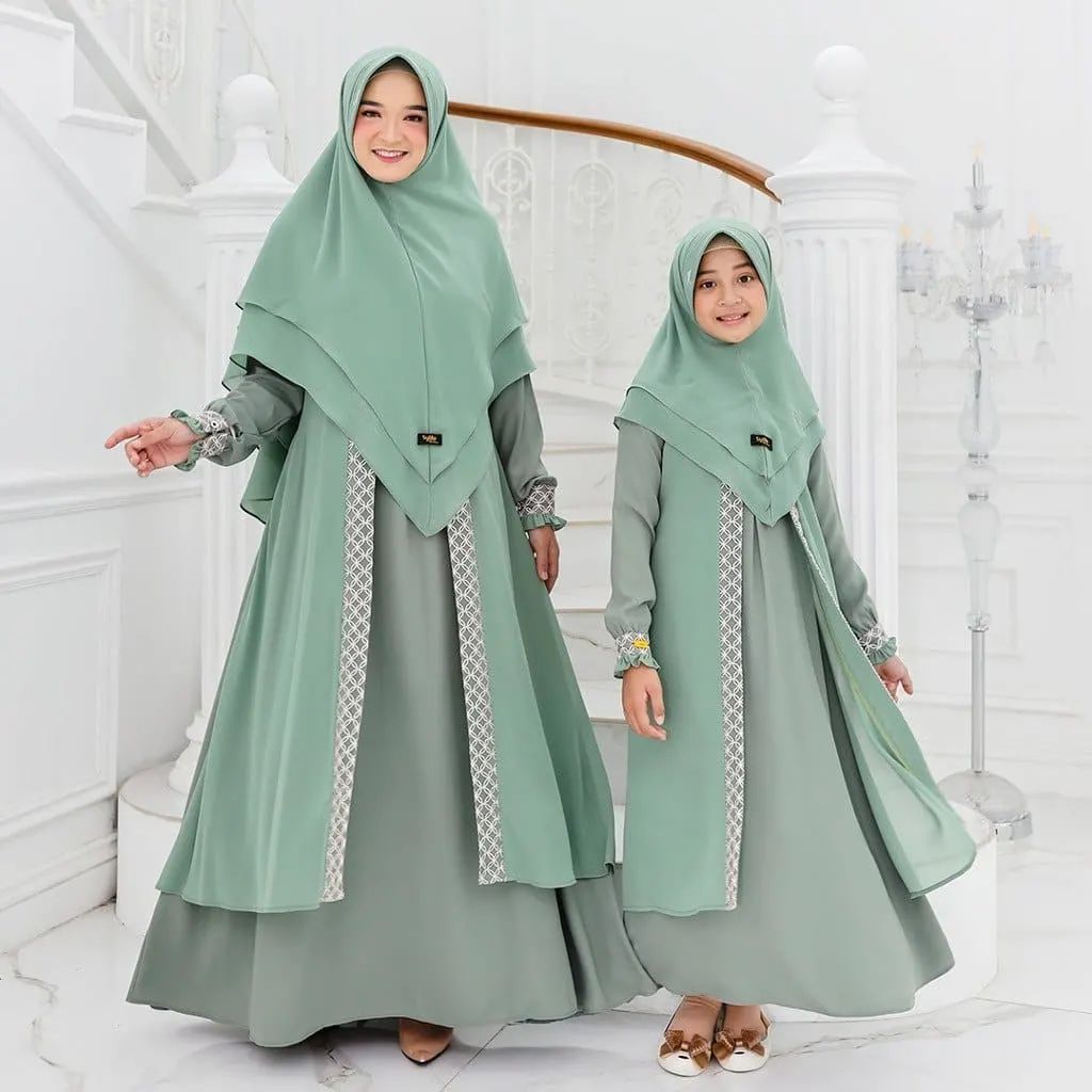 HAZZAFA COUPLE MOM & KIDS - ETHICA SARIMBIT TERBARU 2024 - GAMIS SARIMBIT IBU DAN ANAK PEREMPUAN SET KHIMAR