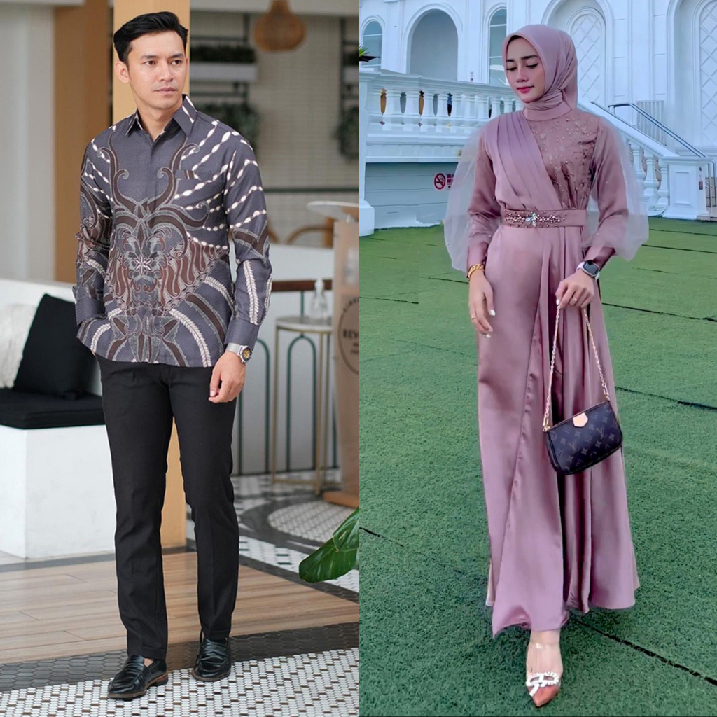 GAMIS COUPLE ADEEVA DRESS KONDANGAN DAN LEBARAN MODERN DRESS SATIN MIX BROKAT PAYET PREMIUM