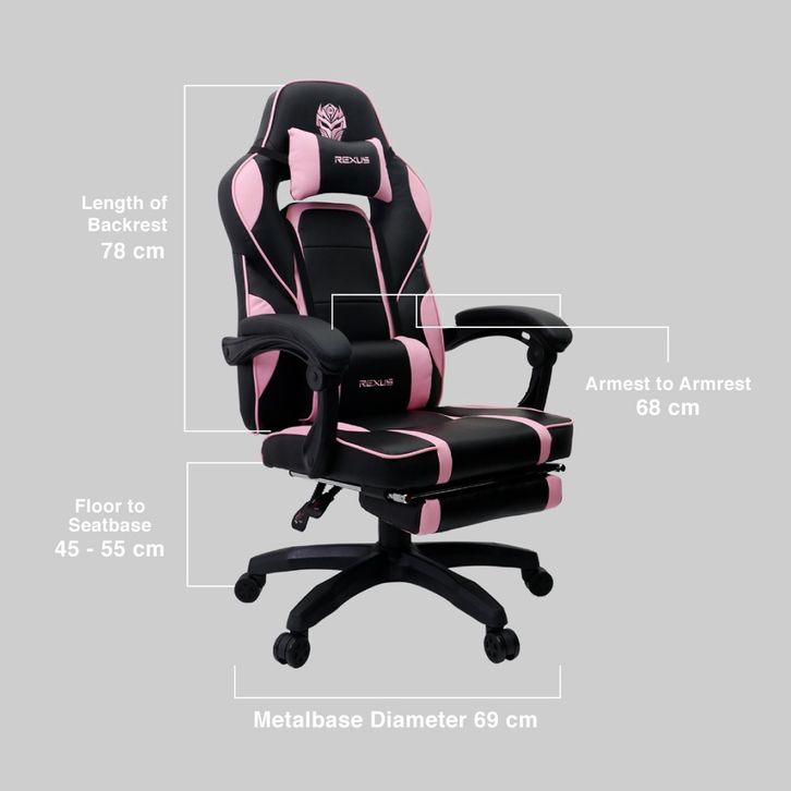 KURSI GAMING REXUS RGC R60 HANDREST DILAPISI BUSA TEBAL DILENGKAPI BANTAL PENYANGGA LEHER DAN PUNGUNG