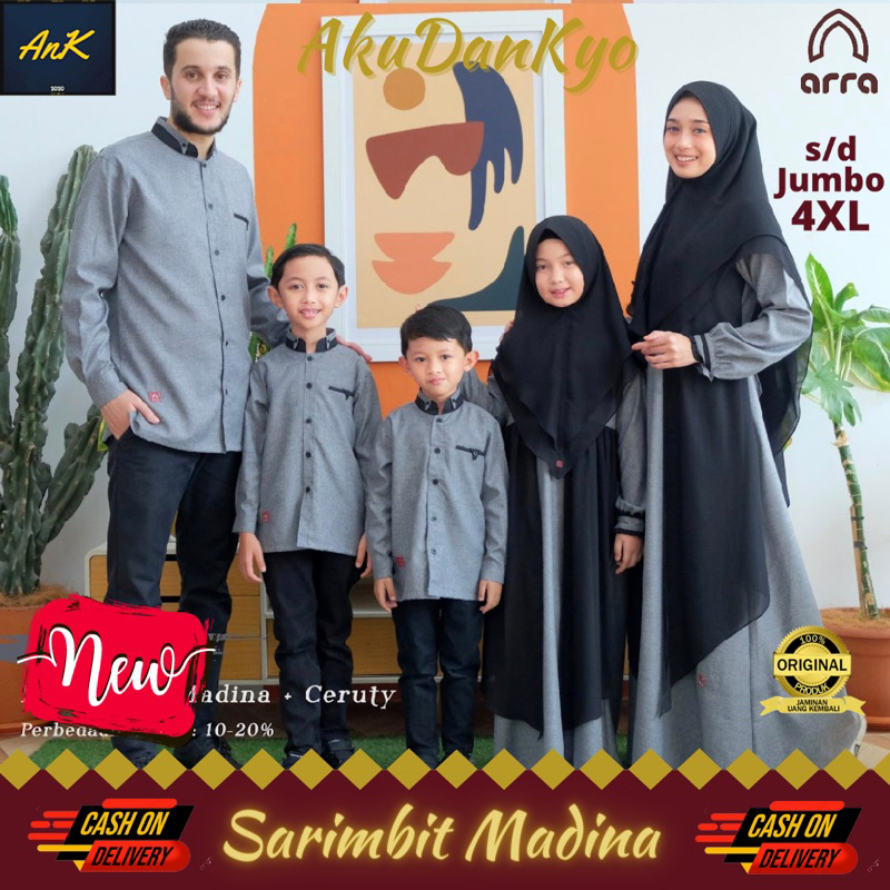 SARIMBIT KELUARGA 2024 TERBARU BAJU LEBARAN 2024 COUPLE KELUARGA ARRA MADINA CHARCOAL