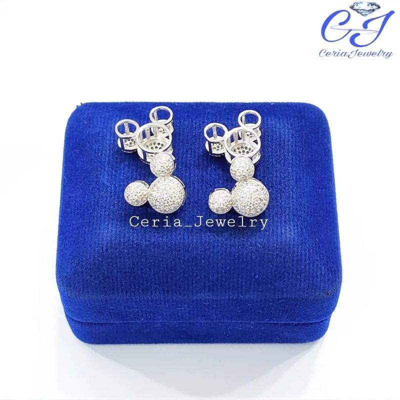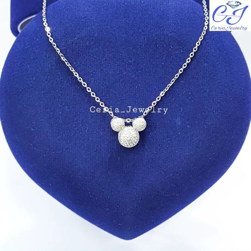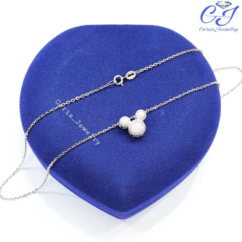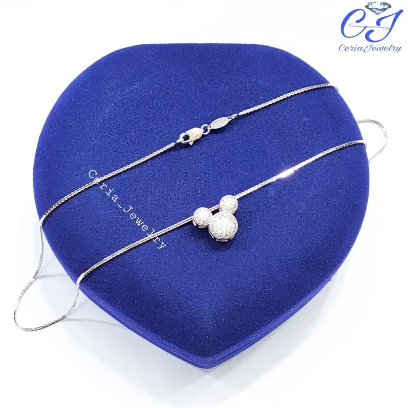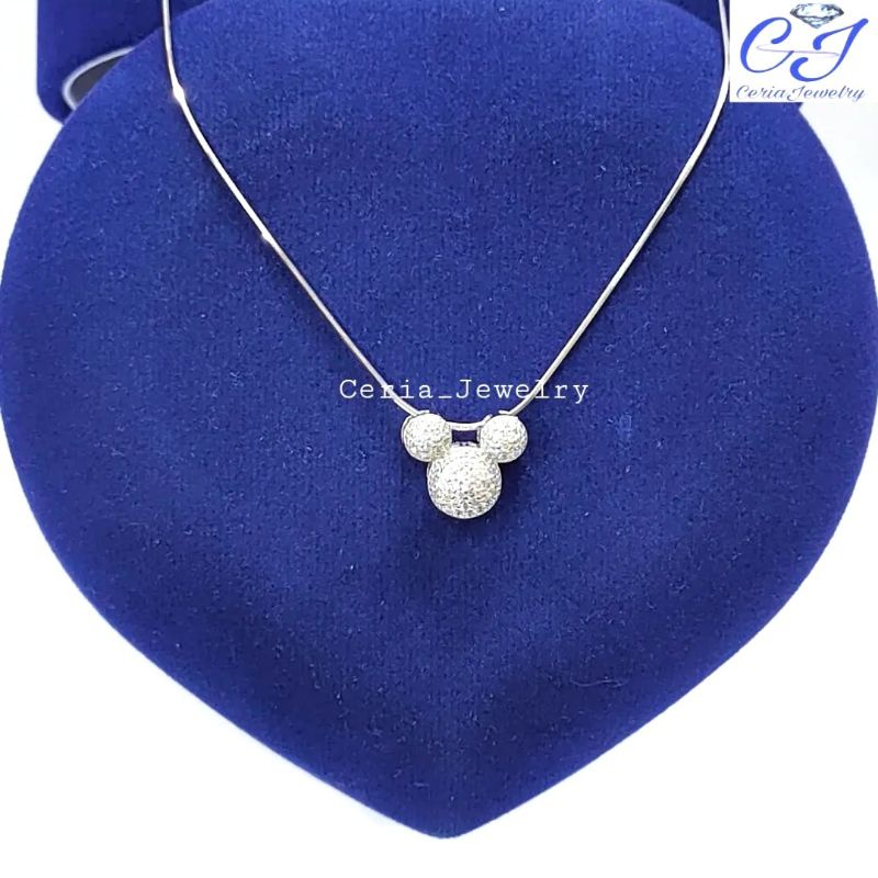 KalunGg Perak Asli Silver Wanita 925 Lapis Ems Putih+ Lontin Mickey mouse- Perhiasan Perak