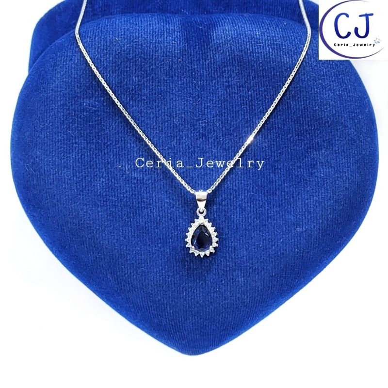 Kalungg Perak Asli Silver Wanita 925 Lapis Emass Putih Model Italy Santa Lontin Ladydaay Batu Biru Variasi Permata Putih