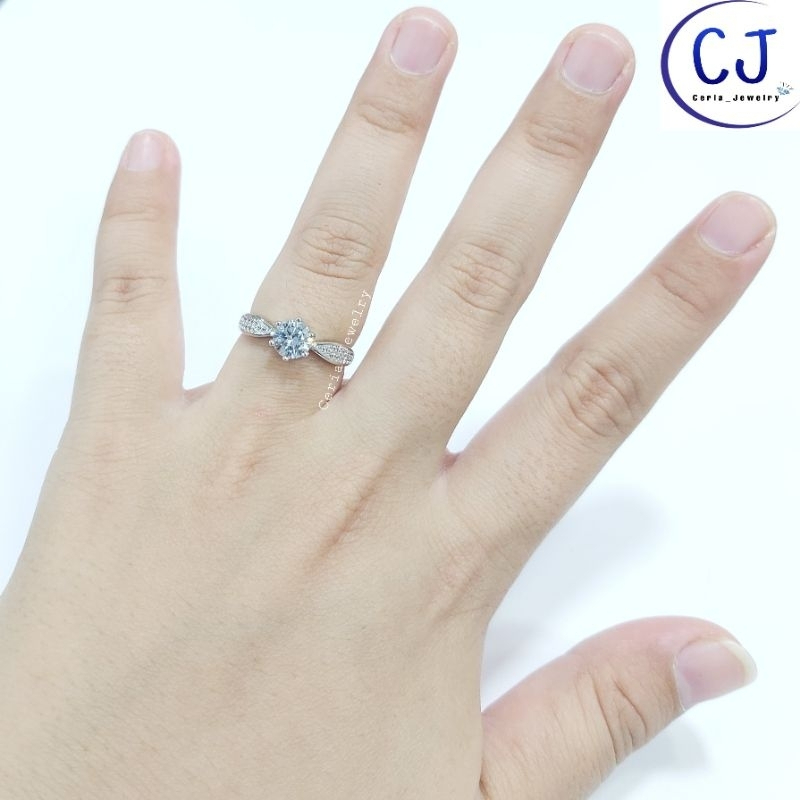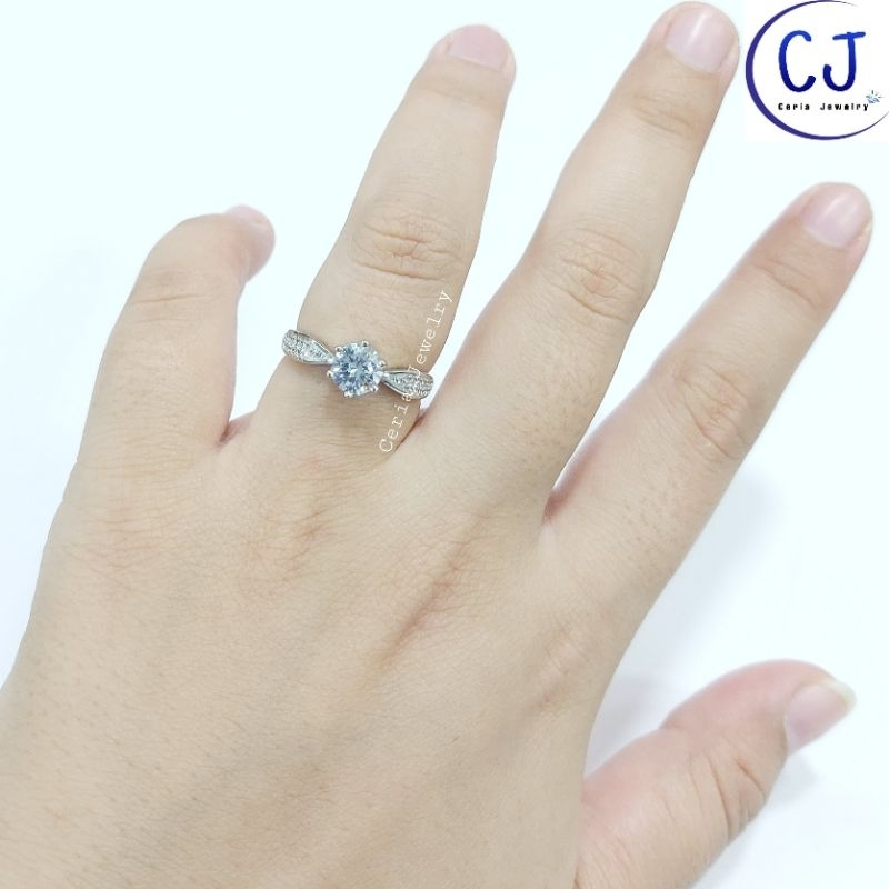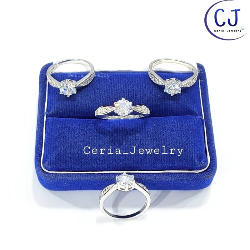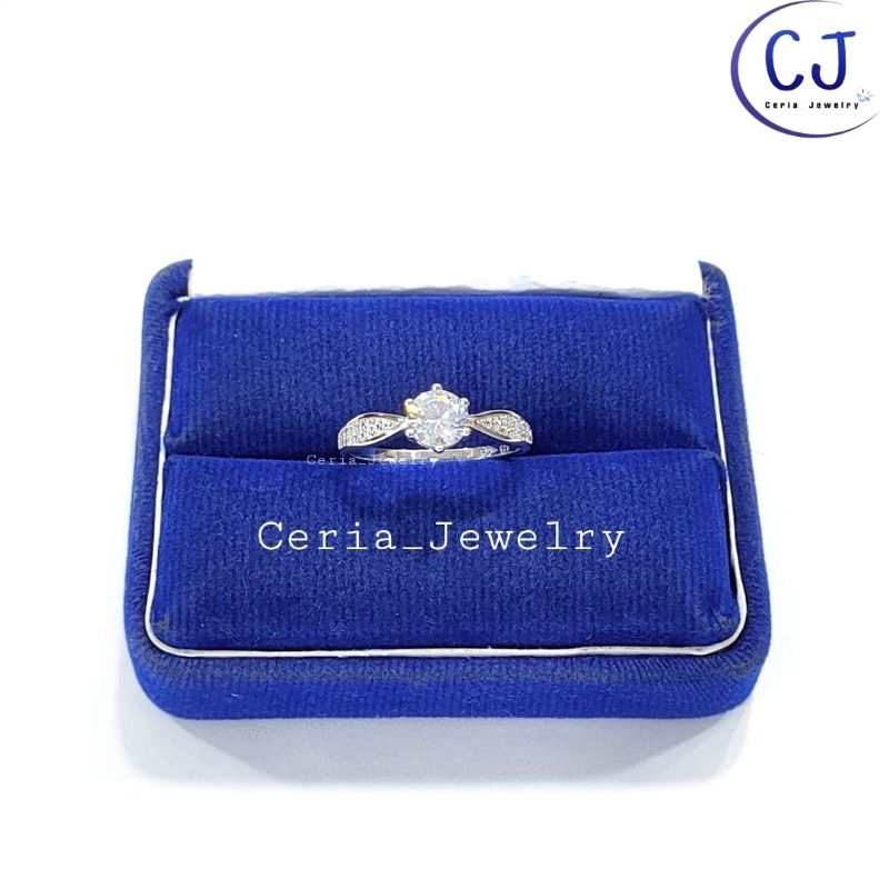 Cin cin Perak Wanita Silver Asli 925 Lapis Ems Putih Model Dua Baris Permata Batu Putih - Cin cin Wanita Anti Karat