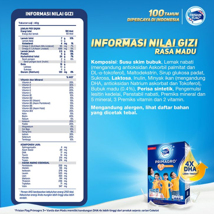 Frisian Flag Primagro 3+ Vanila/Madu 2000 gr Susu Formula Pertumbuhan Anak - 1 Pcs