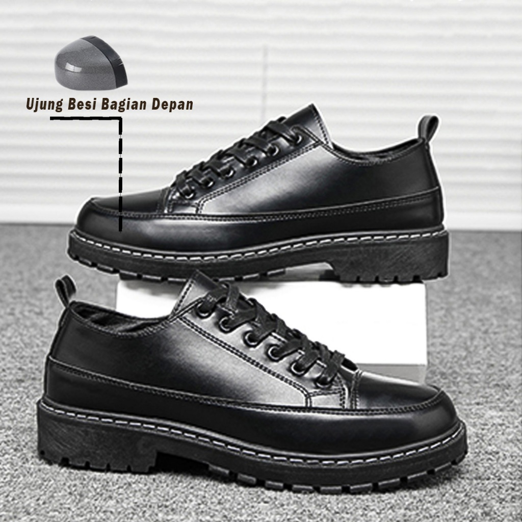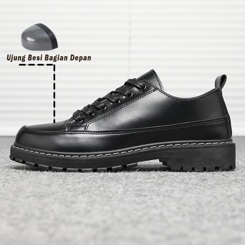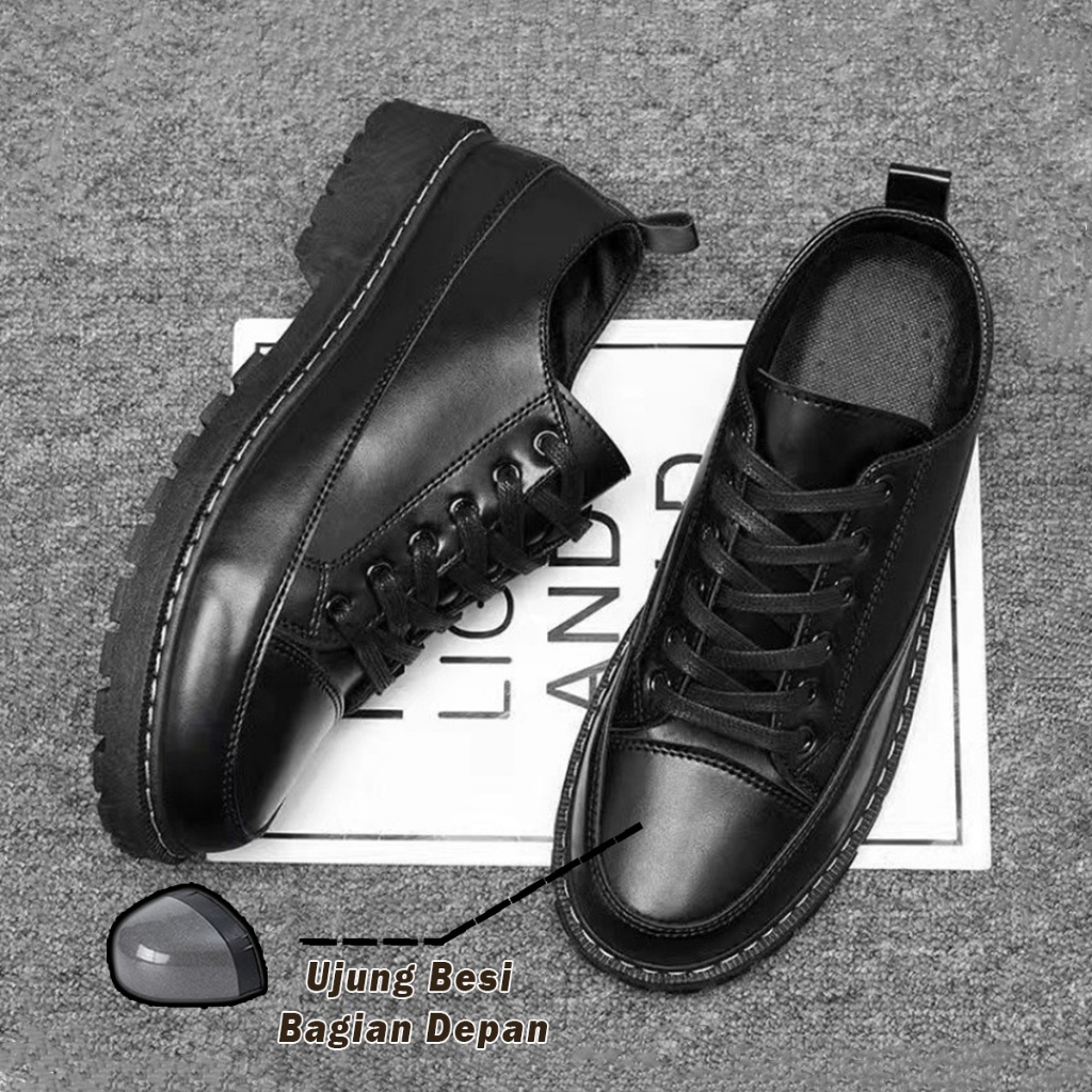 SEPATU DOCMART LOAFER UJUNG BESI SEPATU KERJA PRIA WANITA SEPATU PANTOFEL FULL HITAM MODIS KEREN TERLARIS