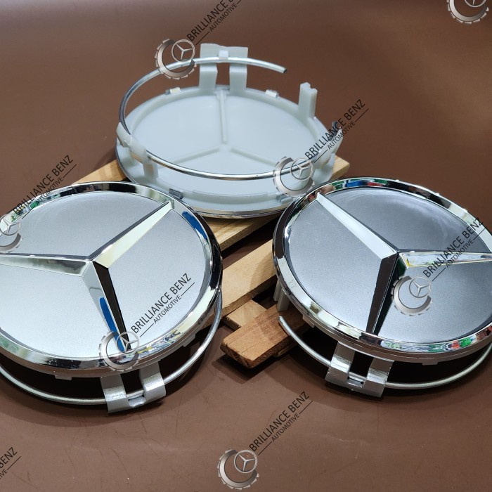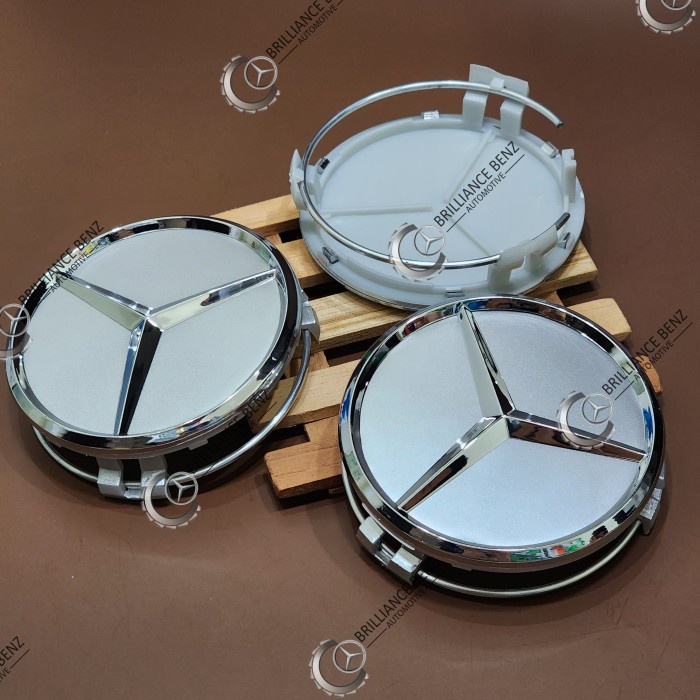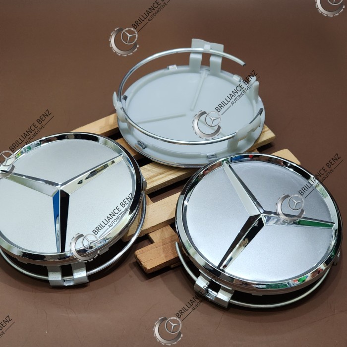 DOP VELG RODA EMBLEM MERCEDES BENZ 75MM SILVER CHROME WHEEL CAP MERCY