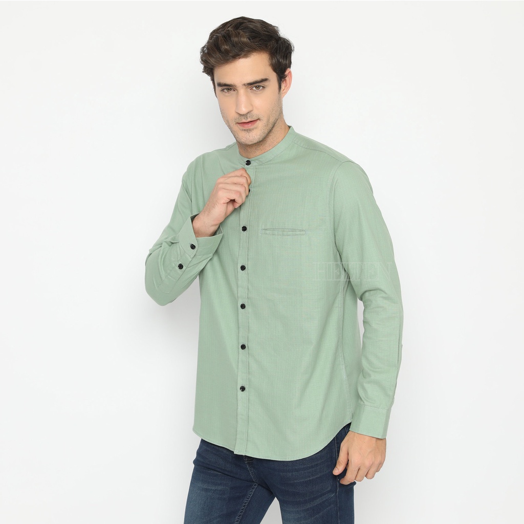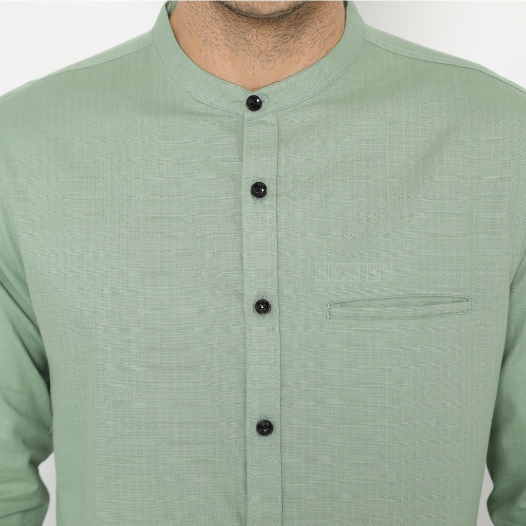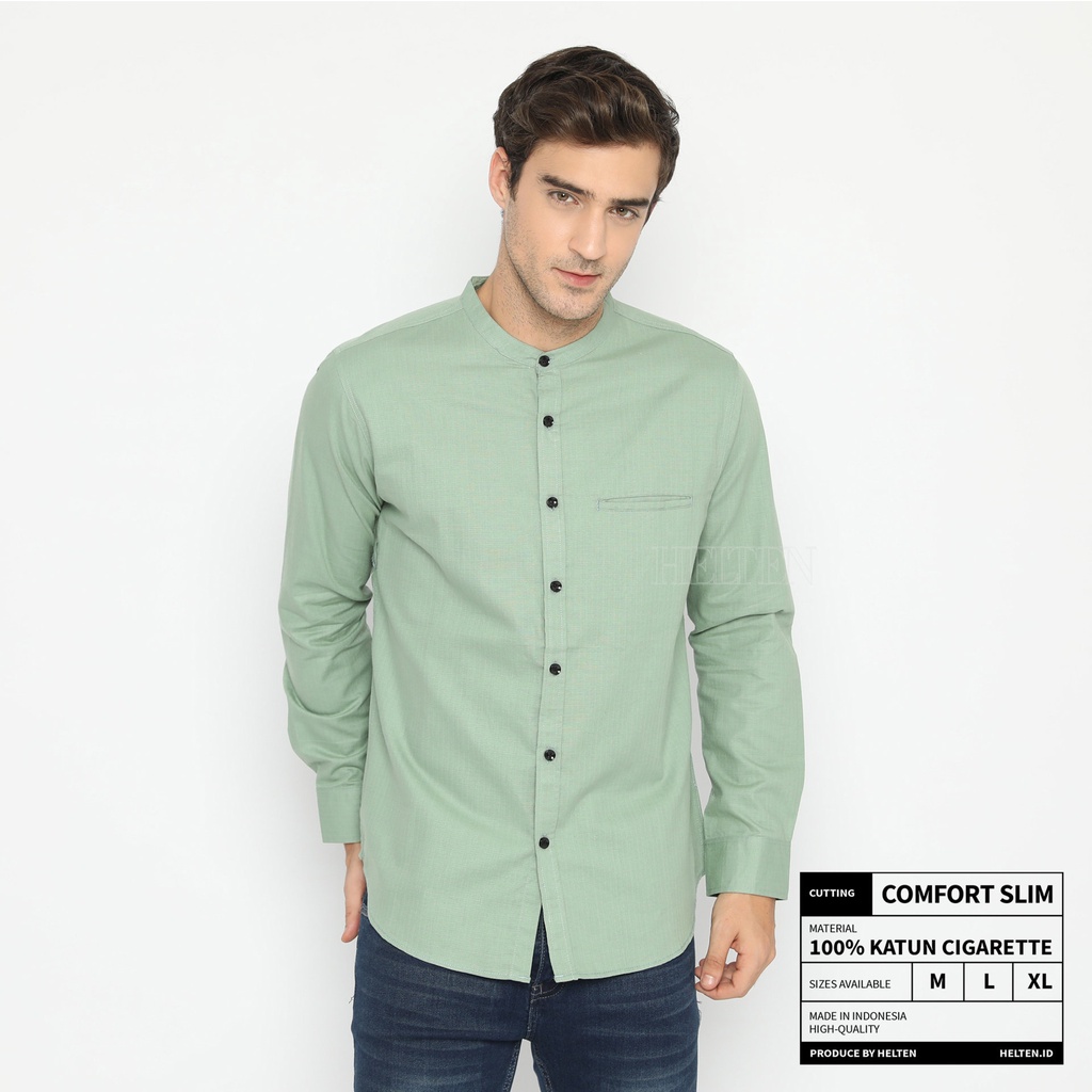 HELTEN KEMEJA KOKO KERAH SANGHAI LENGAN PANJANG WARNA HIJAU SAGE SAKU BOBOK COMFORT SLIM BANYAK WARNA