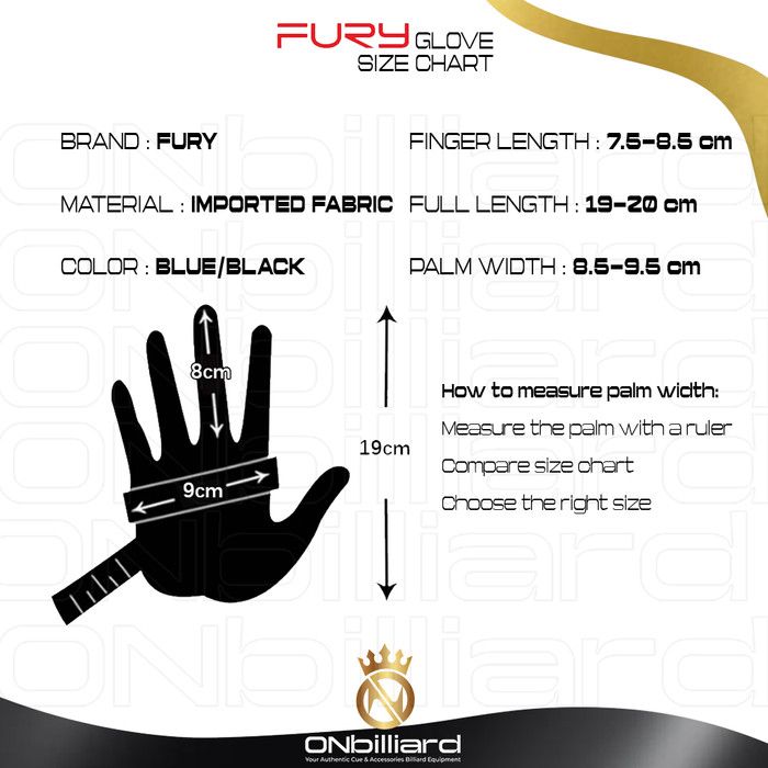 Sarung Tangan Billiard Biliar Fury Close Finger Deluxe Pool Glove - Black