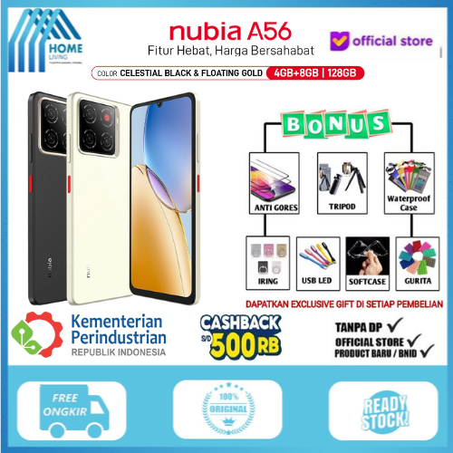 [ Homelaku Store✅ ] Handphone nubia A56 ROM 128GB RAM 12GB (4+8GB) Smartphone Kamera AI 13MP Triple Camera Layar 6.75"