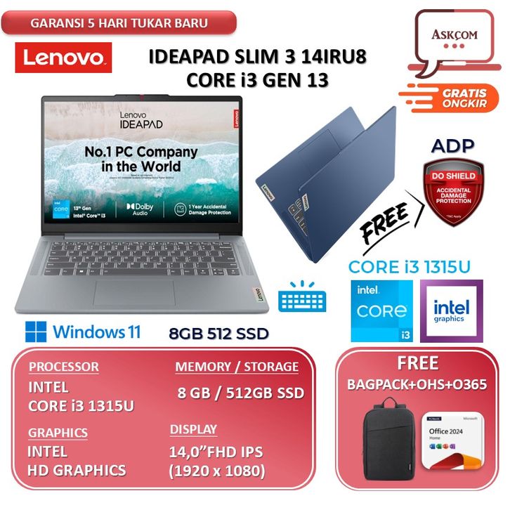 Laptop Lenovo Ideapad Slim 3 14 I3 1315 8GB 1TB SSD W11 OHS21 14.0FHD BLIT 5LID | 5NID | 5MID | 5PID
