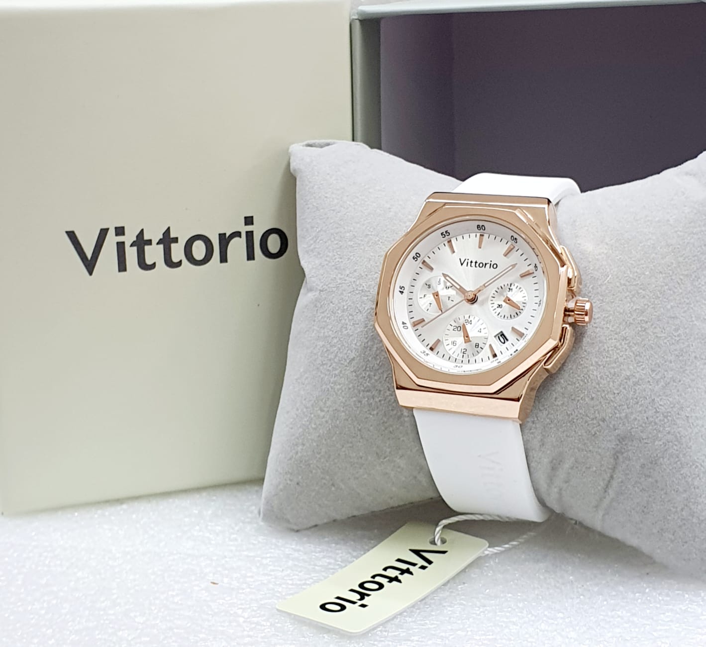 Terbaru - Jam Tangan Wanita Original VITTORIO V6655C Tanggal Tali Rubber Free Box Original & Baterai Cadangan