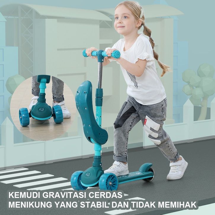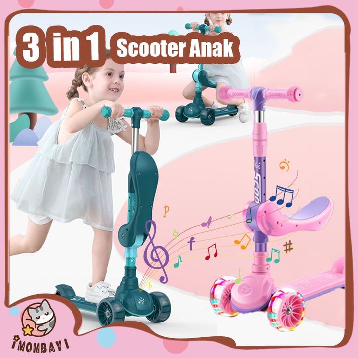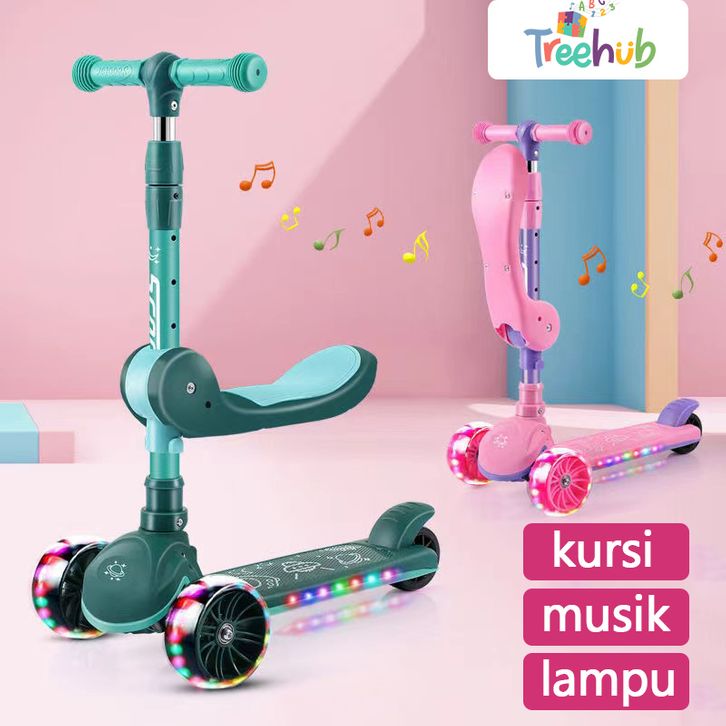 Treehub 3in1 Scooter Anak Skuter Otoped Sepeda Duduk 3 Roda Multifungsi Ada Musik Lagu Lampu roda nyala/Sekuter Mainan a