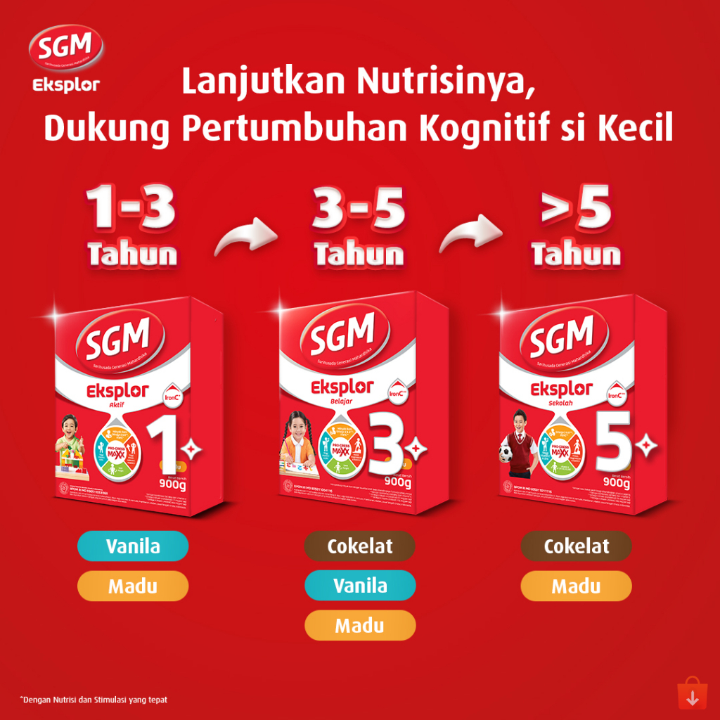 SGM Eksplor 3+ Dengan IronC Susu Bubuk Rasa Vanilla / Madu 900gr