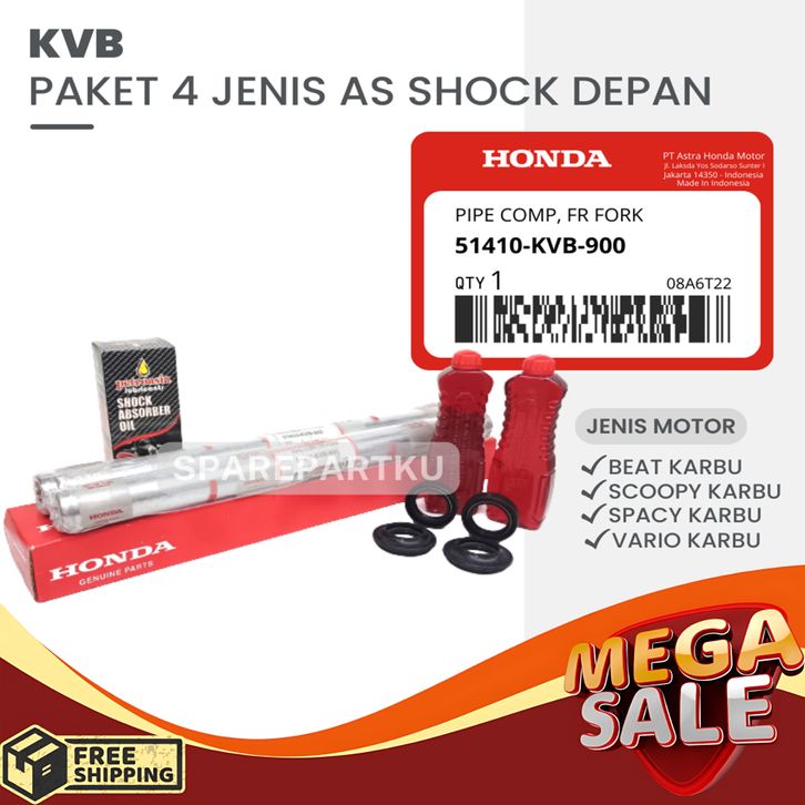 KVB PAKET AS SHOCK DEPAN BEAT CARBU + 2 PCS OLI SOK HONDA + 2 PCS SEAL SHOCK DEPAN + 2 PCS TUTUP ABU VARIO 110 LAMA SCOO