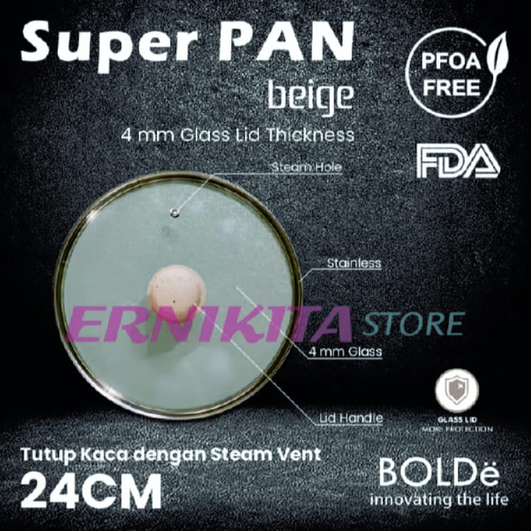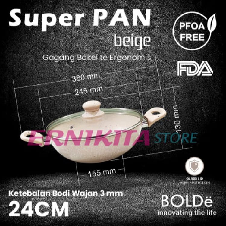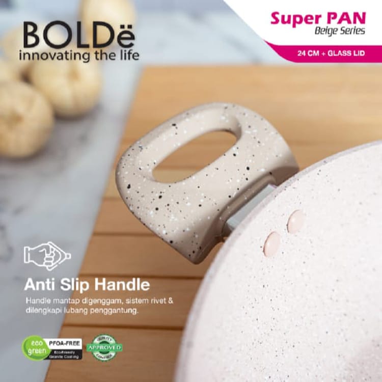 BOLDe SUPER PAN 2 EAR WOK PAN BEIGE 24cm Tutup Kaca Panci Wajan Goreng 2 Kuping Non Sticky Induksi