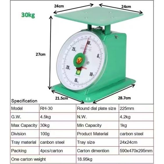 RENKMHE Timbangan Manual Jarum Vietnam Kapasitas 20 Kg 30 Kg 40 Kg 50 Kg Spring Dial Scale Besi Plat Tebal Datar Rata