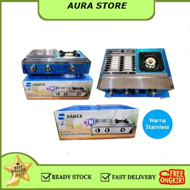 FREE ONGKIR- SANEX Kompor Gas + Panggang 2 in 1 SN-KKP128 Kompor Gas 1 Tungku dan Pemanggang 2 Tungku (Sate, Sosis, Ikan