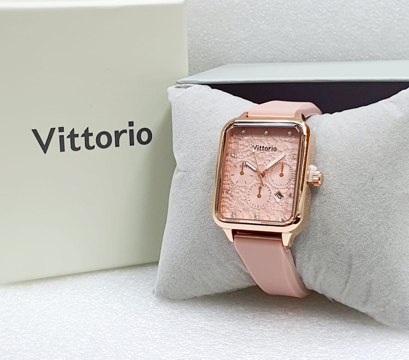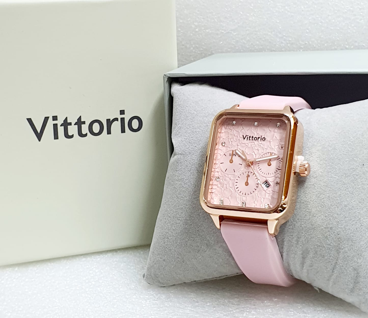 Promo - New Jam Tangan Fashion Wanita Original VITTORIO V2652C Tanggal Tali Rubber Free Box Original & Baterai