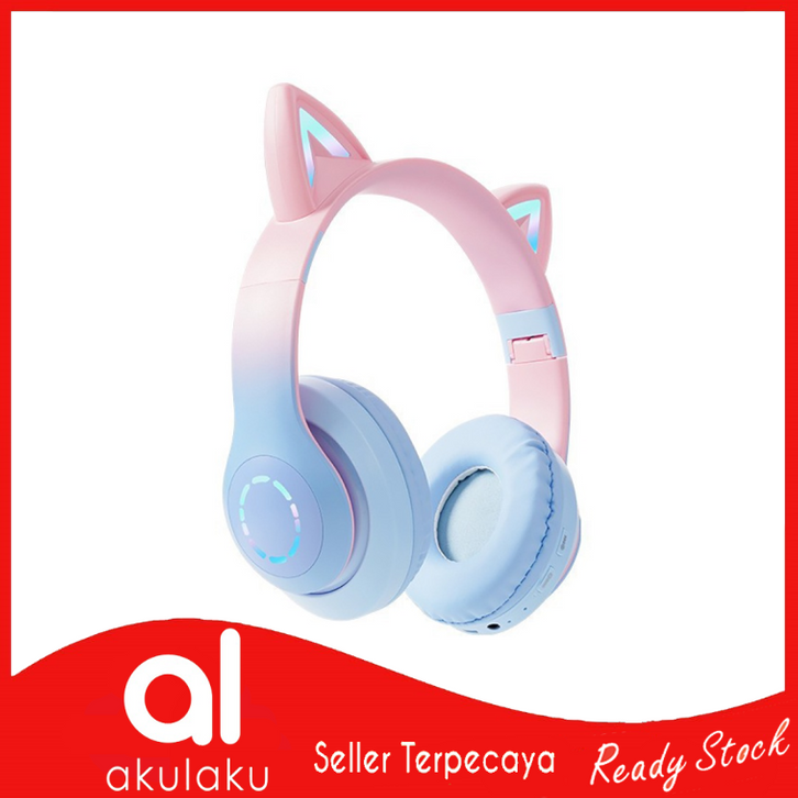 Headphone Wireless B39 Pro Cat Ear LED | Headset Earphone Bluetooth Gaming Nirkabel Stereo TWS with Lampu Gradien