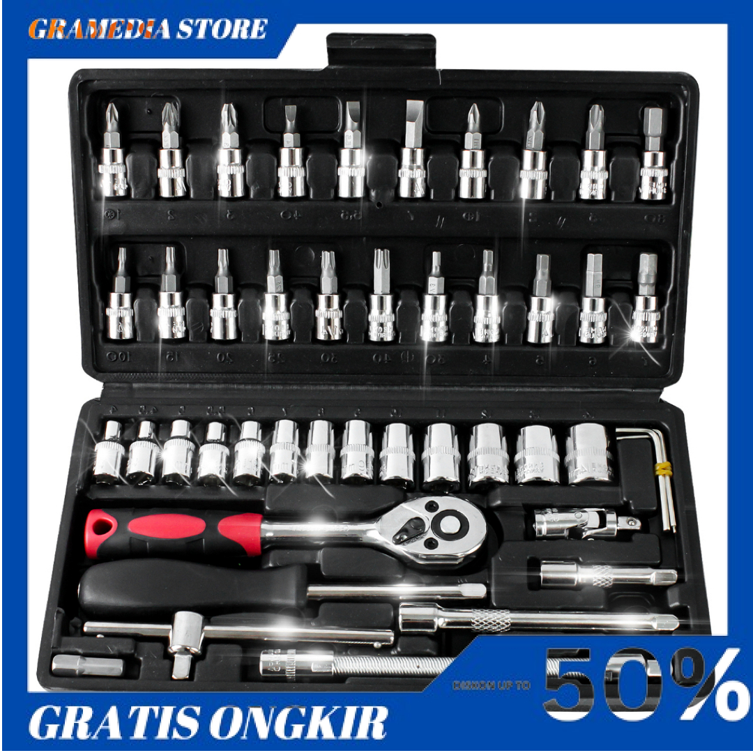 BEST PROMO Allefix Kunci Socket Wrench Pas Socket Set 1/4 Repair Tool 46 pcs- G-