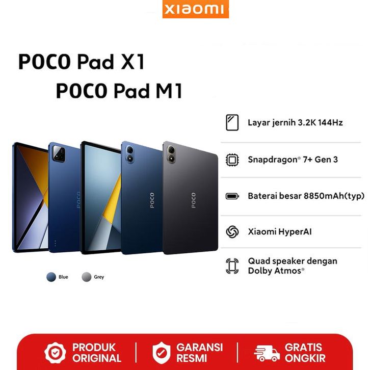 POCO Pad X1 (8GB/512GB) - POCO Pad M1 (8GB/256GB) | Layar jernih 3.2K 144Hz | Snapdragon 7+ Gen 3