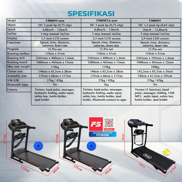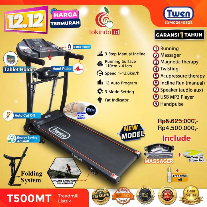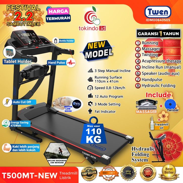 Treadmill Elektrik TWEN T500MT T500MTA Treadmill Listrik Multifungsi Lipat Manual