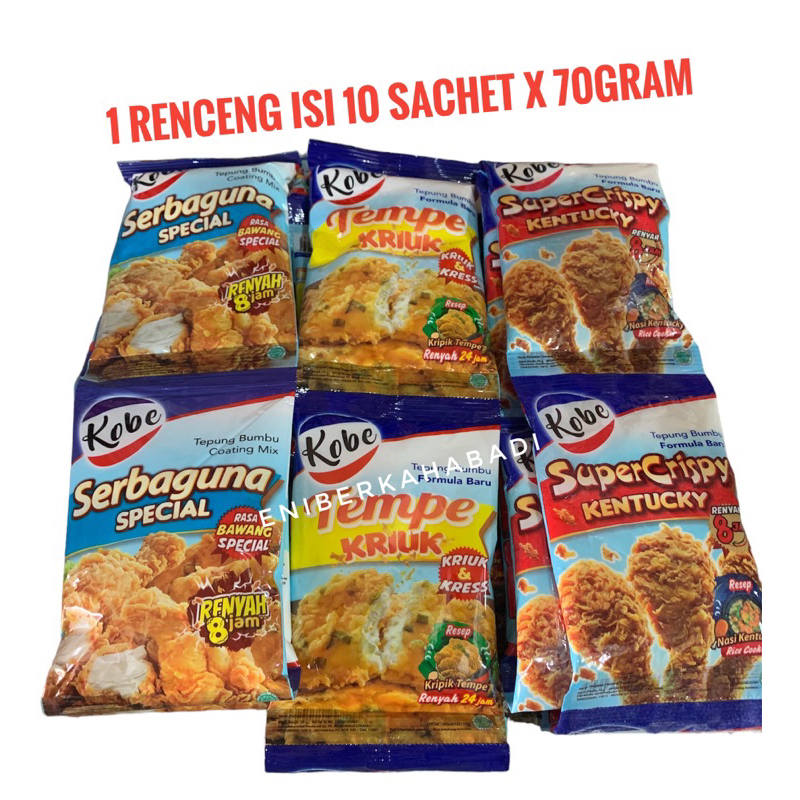 Tepung Kobe (Tempe Kriuk/Super Crispy/Serbaguna Spesial)1 Renceng isi 10pcs x 70 gram
