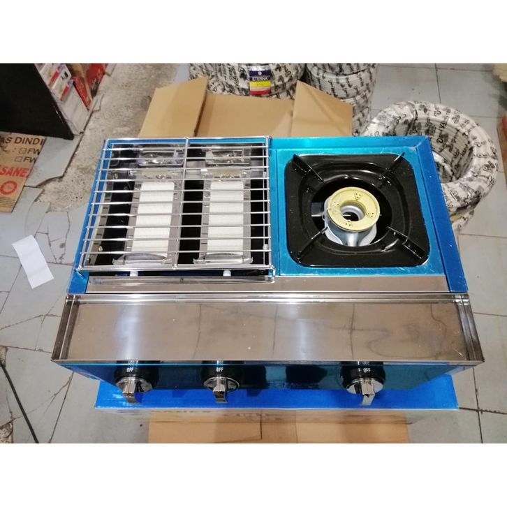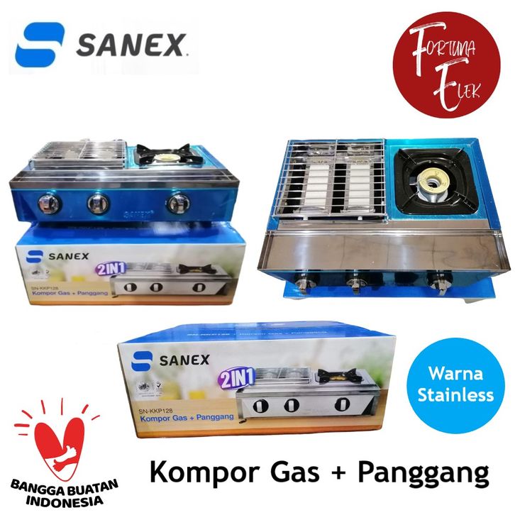 SANEX Kompor Gas + Panggang 2 in 1 SN-KKP128 Kompor Gas 1 Tungku dan Pemanggang 2 Tungku (Sate, Sosis, Ikan, Ayam)