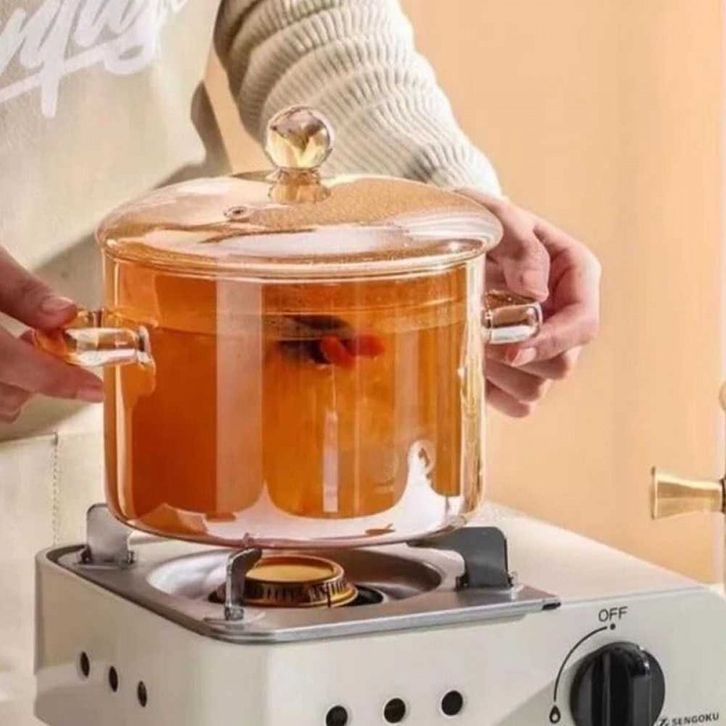 PANCI BENING TRANSPARAN Pot Panci Masak Stewing Soup Pot Borosilicate Glass