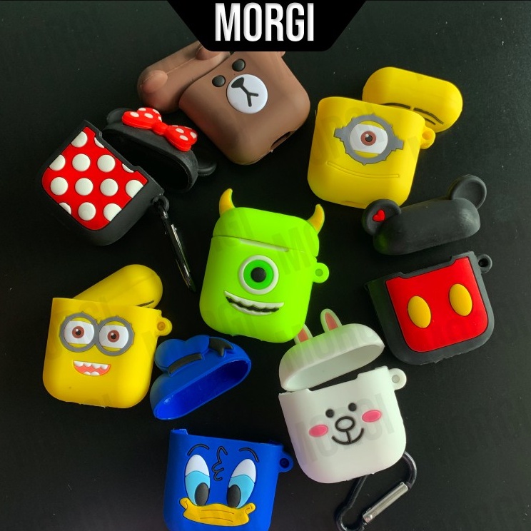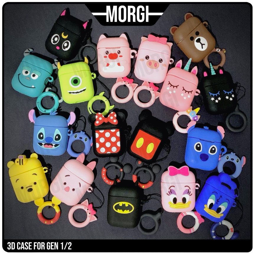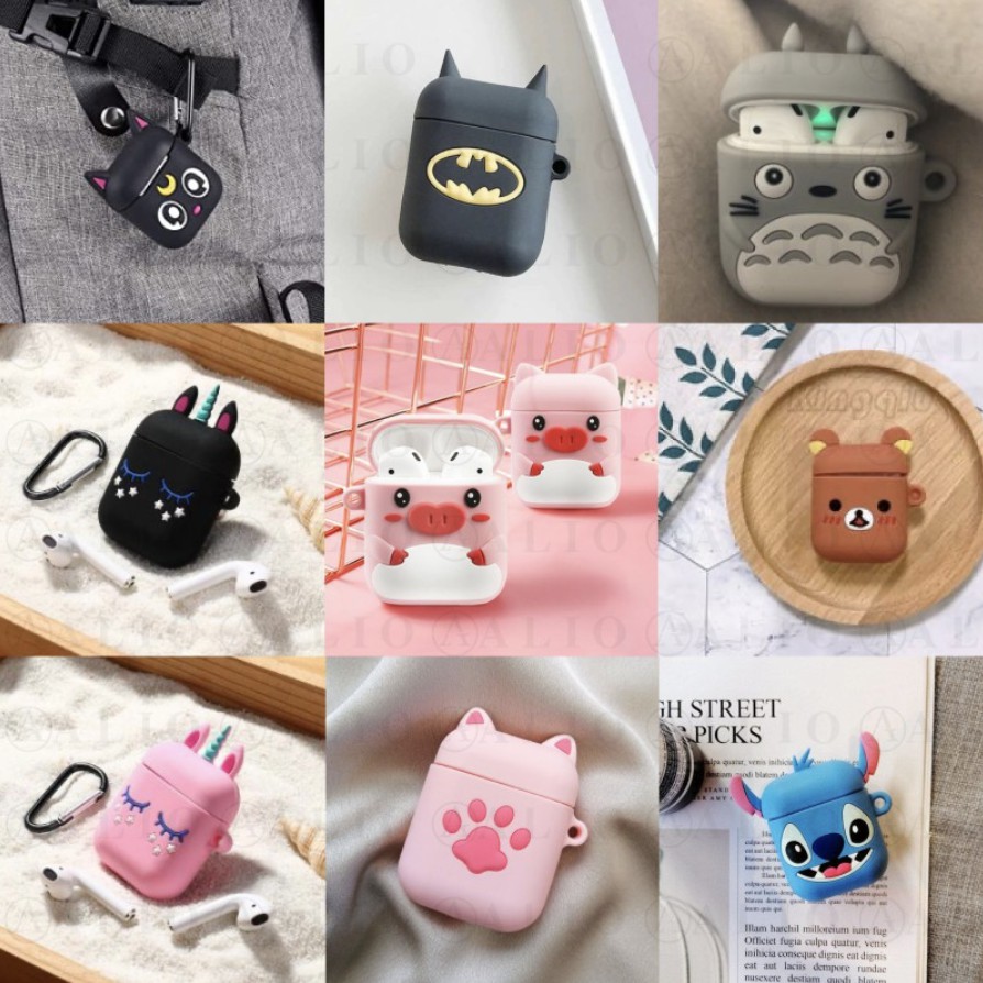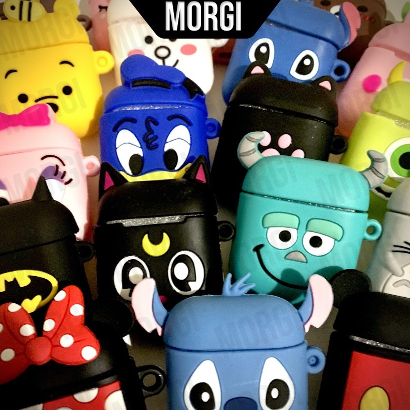 CASE AIRPODS 2 KARAKTER LUCU CASING GEN 1 INPODS 12 I12 SILIKON HITAM POLOS 3D BOBA MINNIE SILICONE