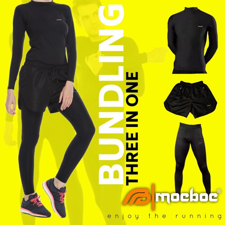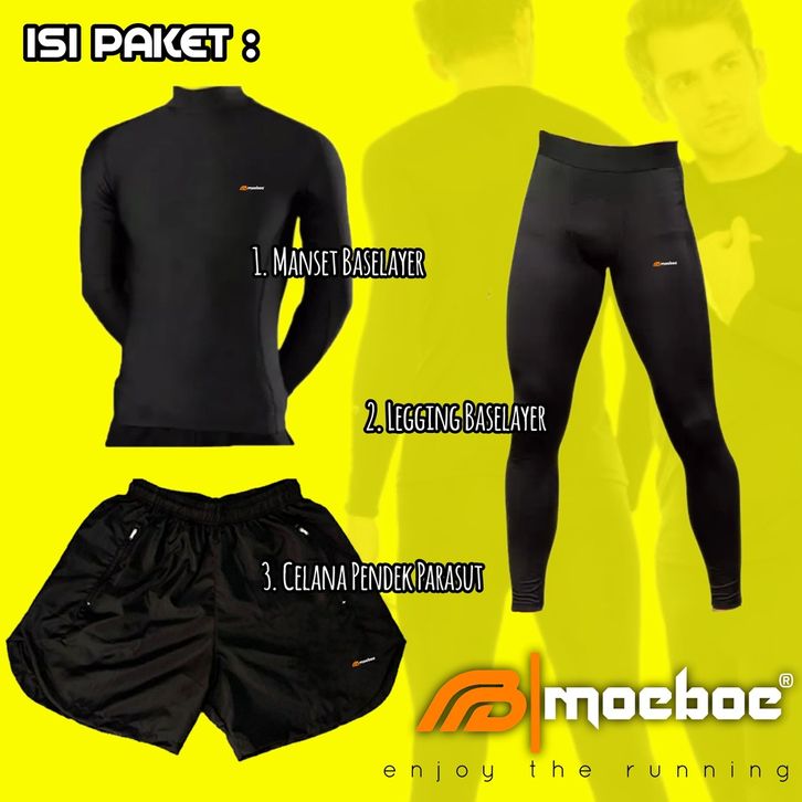 Bundling Paket 3 in 1 Pakaian Olahraga Unisex Manset + Celana Running Parasut + Legging Panjang