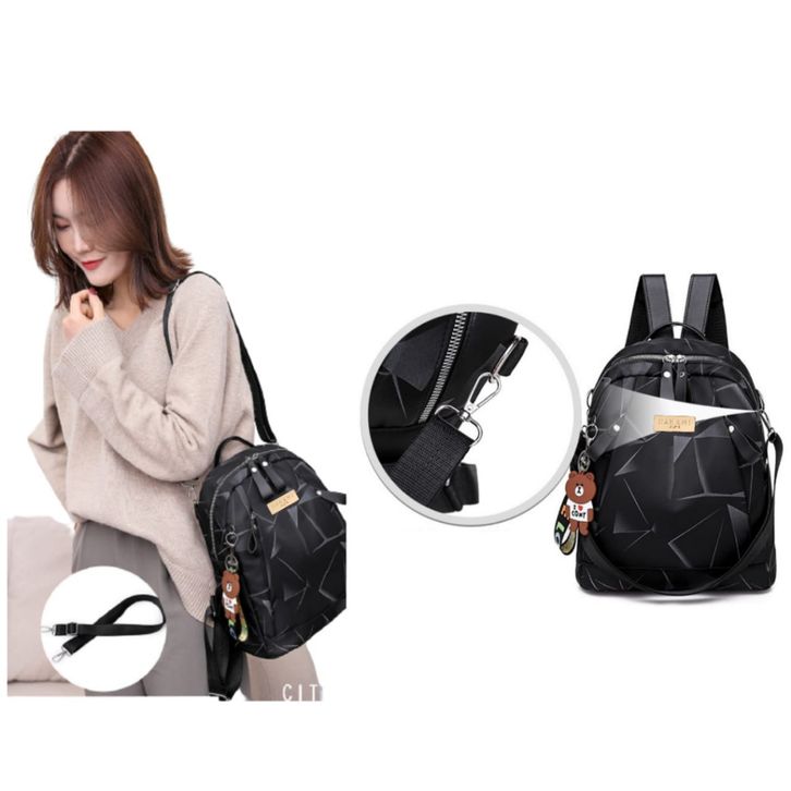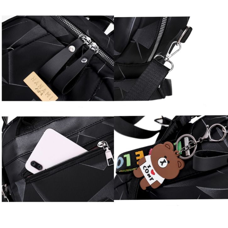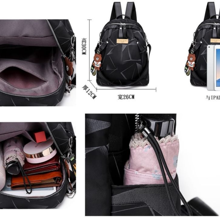 Tas Ransel Wanita Korea Anti Air Hitam Ellesma TA395B5 Backpack Sekolah Kerja Besar Batam Original