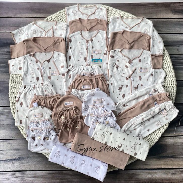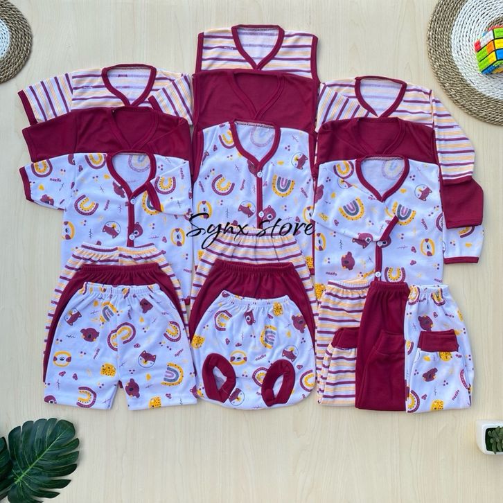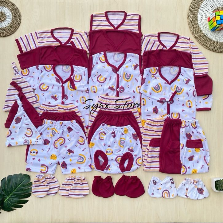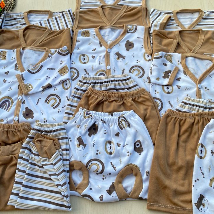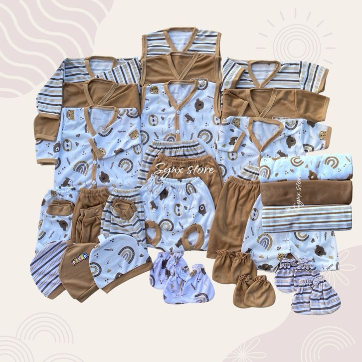 (SNI) 36 Pcs Paket Lahiran Baju Bayi Dan Bedong Motif Polos Karakter Seri Terbaru Usia 0-3 Bulan