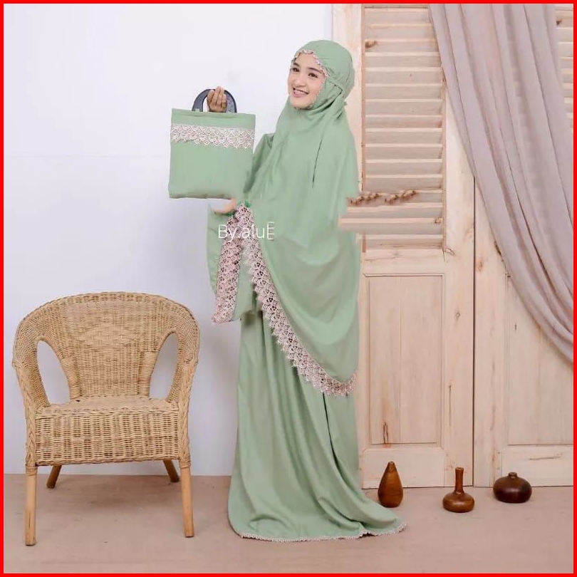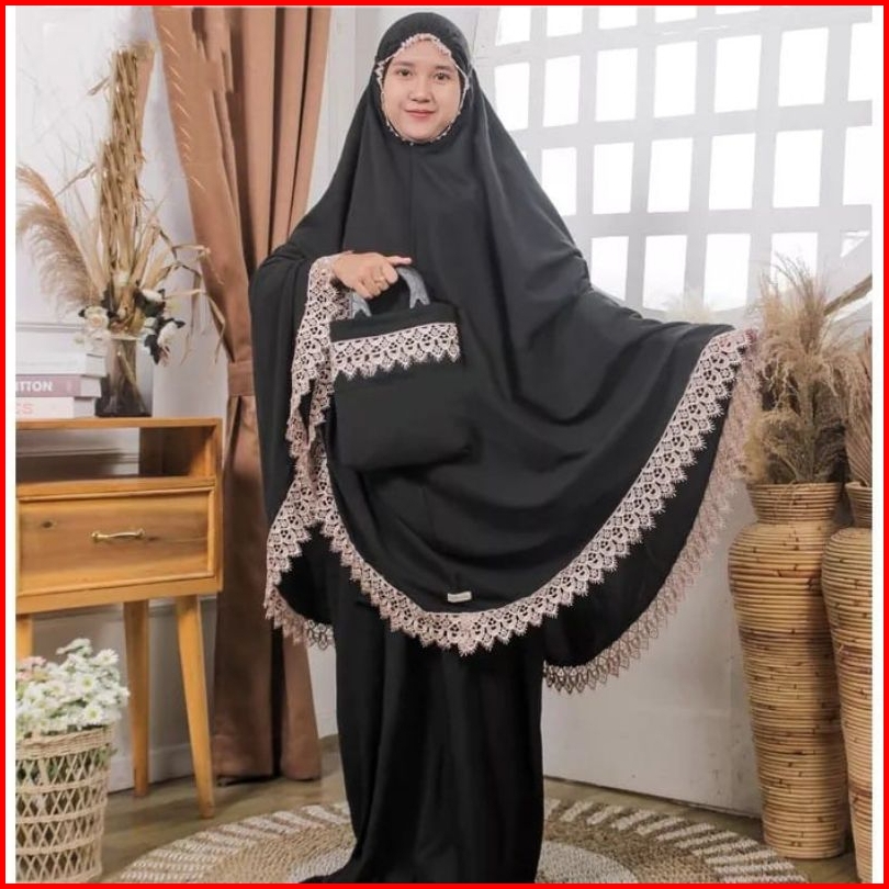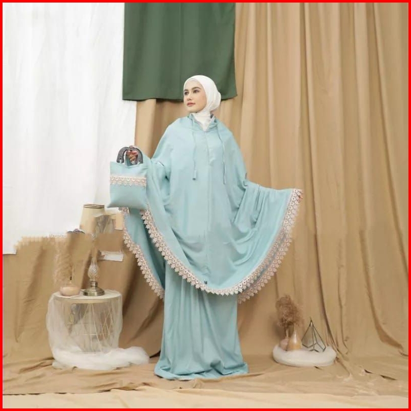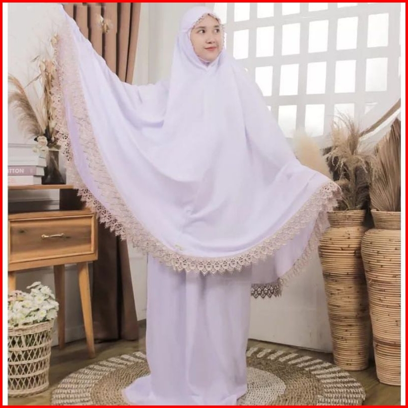 Mukena Dewasa Katun 2in1 Mukenah Resleting Terbaru Renda Mewah
