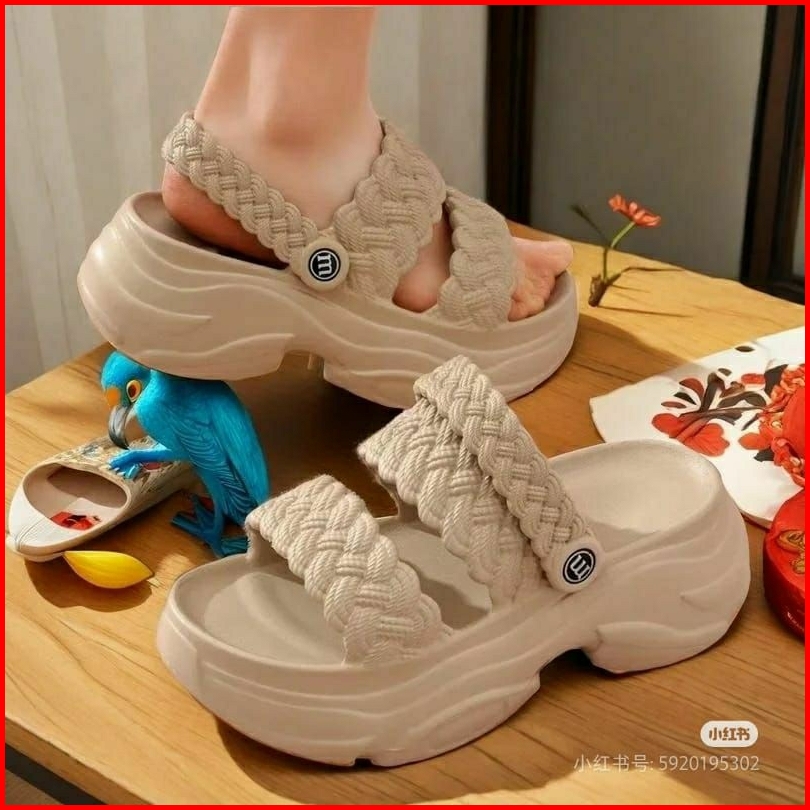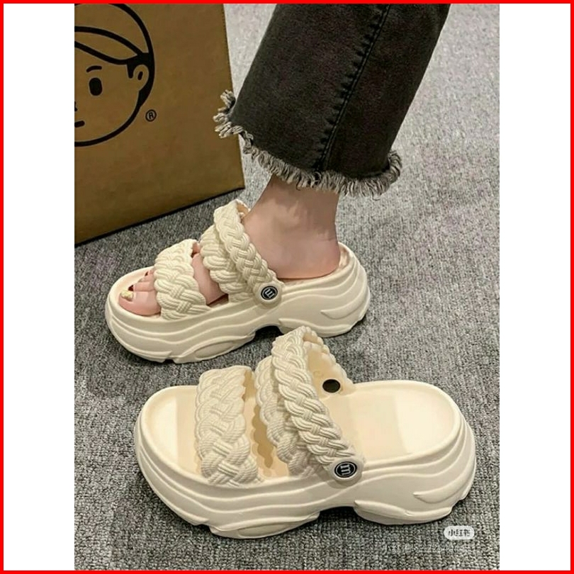 Sandal Jelly Wedges Wanita Flatfrom Dewasa Eva Rubber Ringan 5.5cm