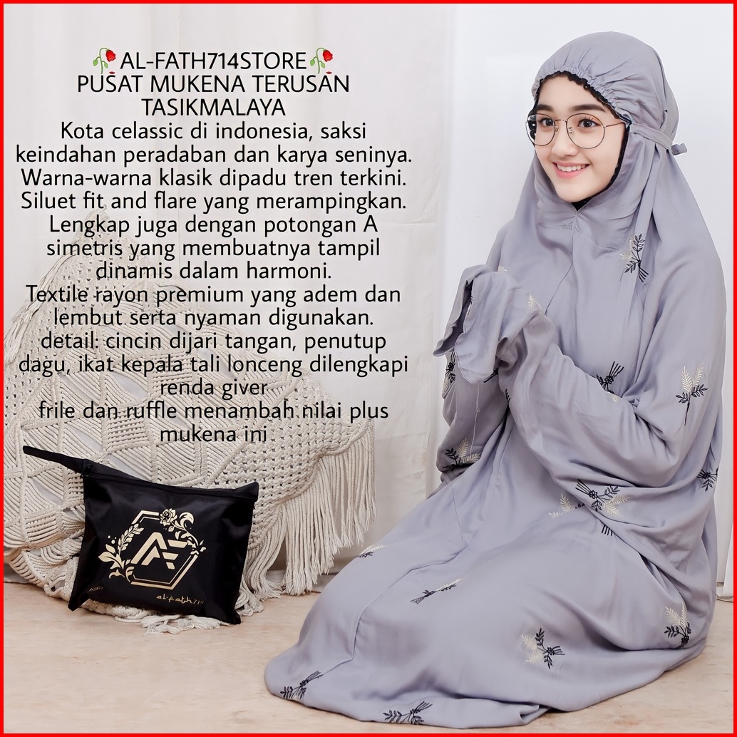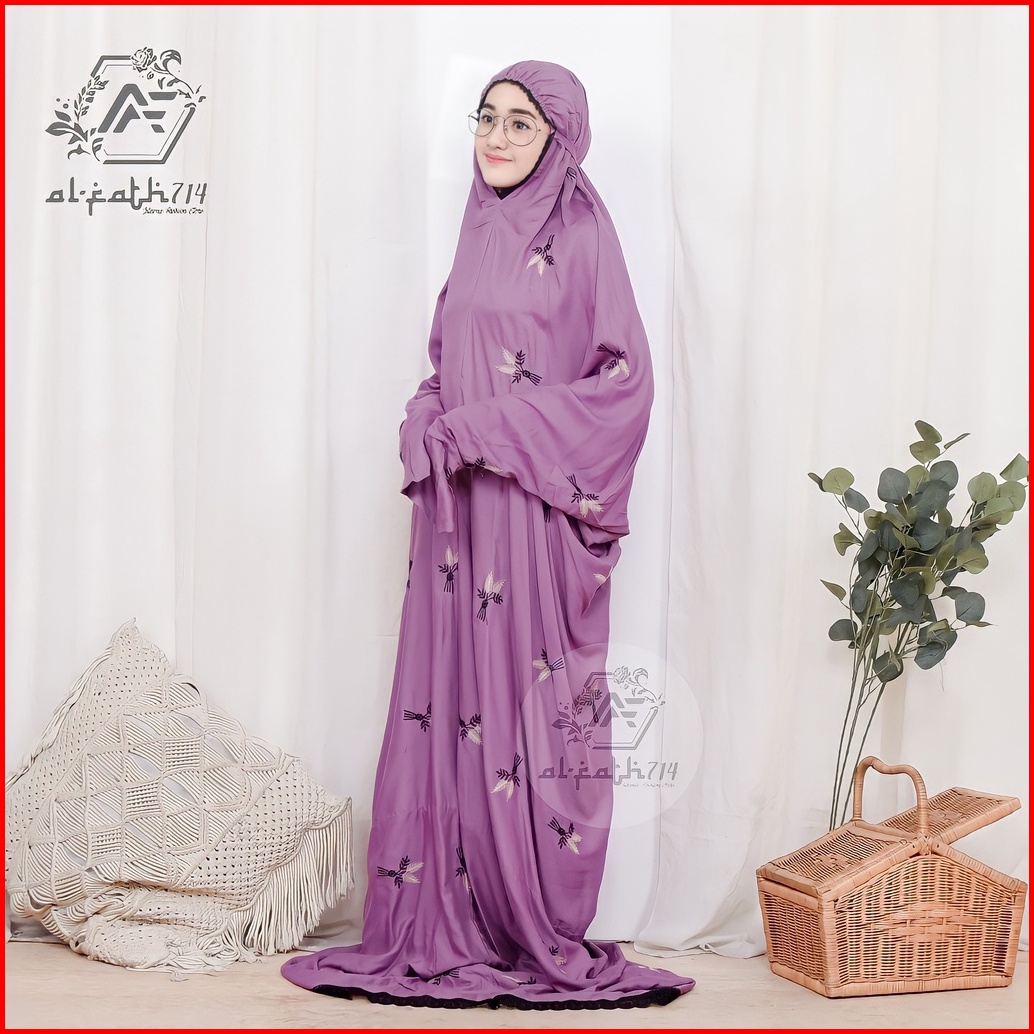 Mukena Dewasa Terusan Bordir Pita Bunga Mukenah Lajuran Alfath